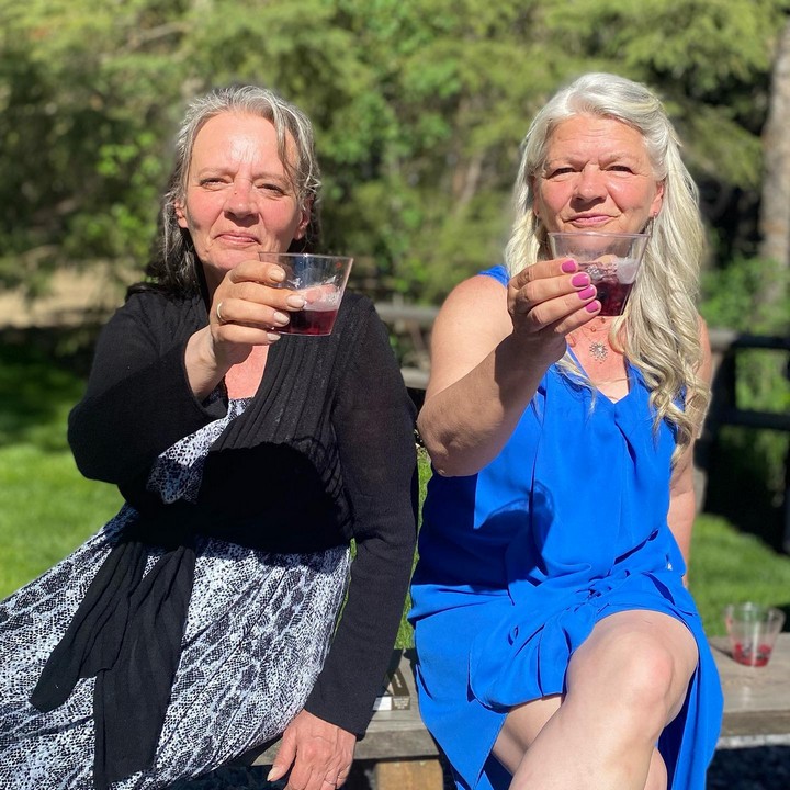 The first picture is of Jenny and her sister with wine in her glass. Not an unusual site but the paralyzers maybe more common.