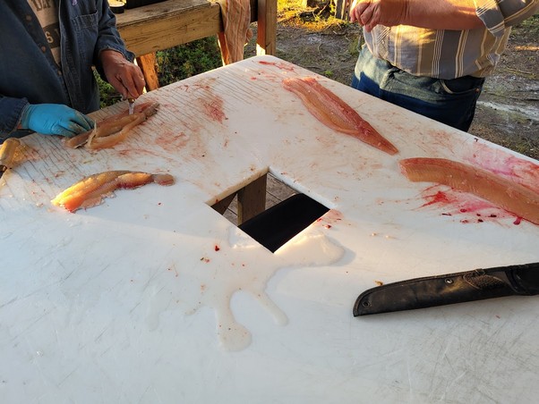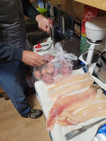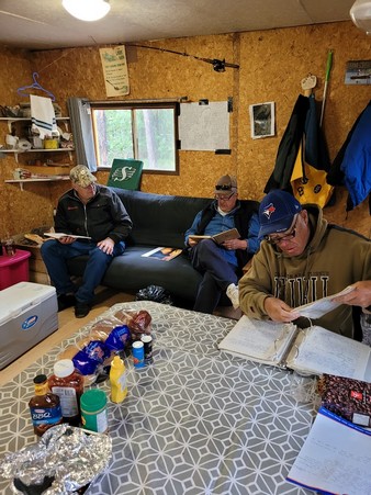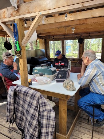 Food- Our host Jim was amazing. We had some perfect meals on the trip. We had our first night big fish fry along with home made French Fries. We had bacon & eggs with toast for breakfast and we had sausages and eggs for another. We had wonderful burgers and home made fries for another supper. One night while Jim & Alfred were cleaning fish I BBQ’d smokies, beans, sautéed onions, and corn on the cob. For one breakfast I cooked scrambled eggs with a new discovery for me. Jim bought a small cartoon with 9 full eggs in it with an expiry of 2026. Talk about an easy way to transport eggs and they tasted just like normal. What you can find when looking for something different. Jim also found a beer batter for our fish that he used that was excellent. Perfect meals. We had shore lunches most days which were great.