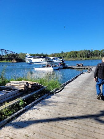 Another excellent take off and heading back to Buffalo Narrows. The first stop back is where the wallet went missing by a guest. LOL A few eats for a lunch and on the road again. The tires made it all the way back again. Luckily.