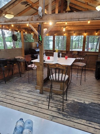Cabin- I loved Jim’s cabin. It is a true ” cabin” but is prefect. A large deck with a outside sitting and kitchen area, a full functioning kitchen inside with a gas fridge, stove, a living room with seating and a futon, a 6 person bunk bed house, a master suite, a bathroom with shower, and a mudroom with a fold down bed. Hot and cold water drawn from the lake. Full electrical by using the 6500 gensets. Two large storage sheds, 3 fishing boats, wonderful dock that cost 12K as it was needed for the float plane to tie up to, and a perfect bay location. It is perfect !