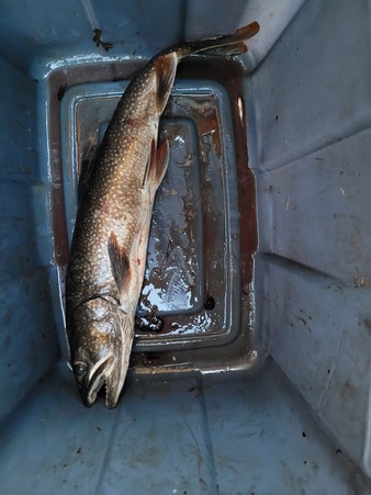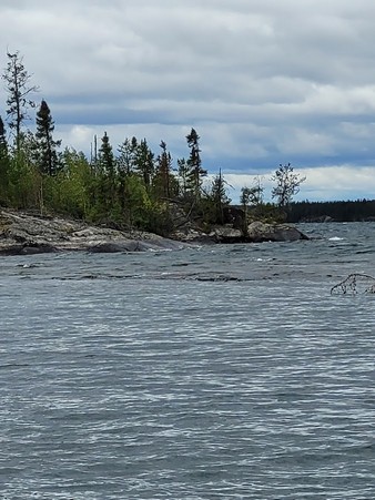 Weather– We were on this trip from Monday to Saturday ( 6 days) and the only warm non windy days were the first and last. In fact with these two days removed 10 degrees was our high temperature. Lows at zero to 1 or 2 degrees. The one day I had my shirt on, my golf wind breaker, my plaid lined hoodie jacket covered with my rain jacket and a life jacket. I used many pocket hand warmers as my fingers turned white pretty fast holding a fish to remove them and just holding the rod. The winds at least 30 km/h even on the days we were fishing caused all kinds of issues. You would catch a fish and throw the motor into neutral to bring it in and before you knew it you were crashing against rocks. One day the white caps were so big we couldn’t fish.