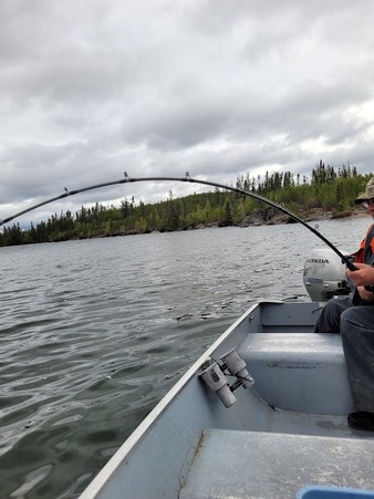 Fishing- The reason we came here is fishing. We caught a lot of fish and we ate a lot of fish. Jim would cook them in oil with a beer batter and they were excellent. Not a single bone found by any of us. We had two full meals with fish that were excellent and brought back the maximum we were allowed. Sask is a little better than Alberta as their conservation officers must be a little smarter as they only require a small piece of skin left on each fillet not like Alberta requiring the full fish head etc. The Jack are awesome here. No slime what so ever. The clean cold water is perfect. We were allowed to bring 12 trout back but were only able to catch one even though it was a 8 pounder. Here is the only disappointing thing about the trip. This far up north with very little fishing done ( 4 cabins only and no access) the expectation was greater than achieved. Both Alfred & I brought heavy gear for large Jack and large trout. This means trolling only and in most cases going deep. The lake didn’t accommodate this. Our other two people on the trip used standard fishing gear I am going to say the average Jack caught lately in Alberta normal lakes is the 4 – 6 pounders with the odd larger one thrown in like Fred’s 20 pounder. There are a few 8 pounders thrown in. Disappointed as our keepers were all between 6 and 8 pounds. Perhaps overall a little larger but not by much and with little fishing on the lake surprising. The experience though more than made up for the lack of size.