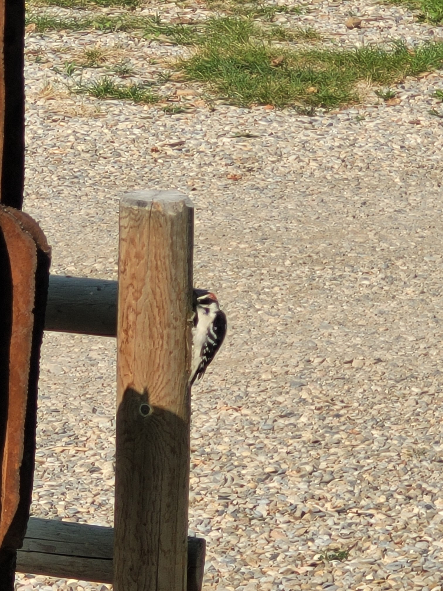 Remember what I said about stupid people. Can you believe what a dumb pecker this is. He was just pounding away on my fence post. A dried out, treated post. I guess they exist across all species. LOL