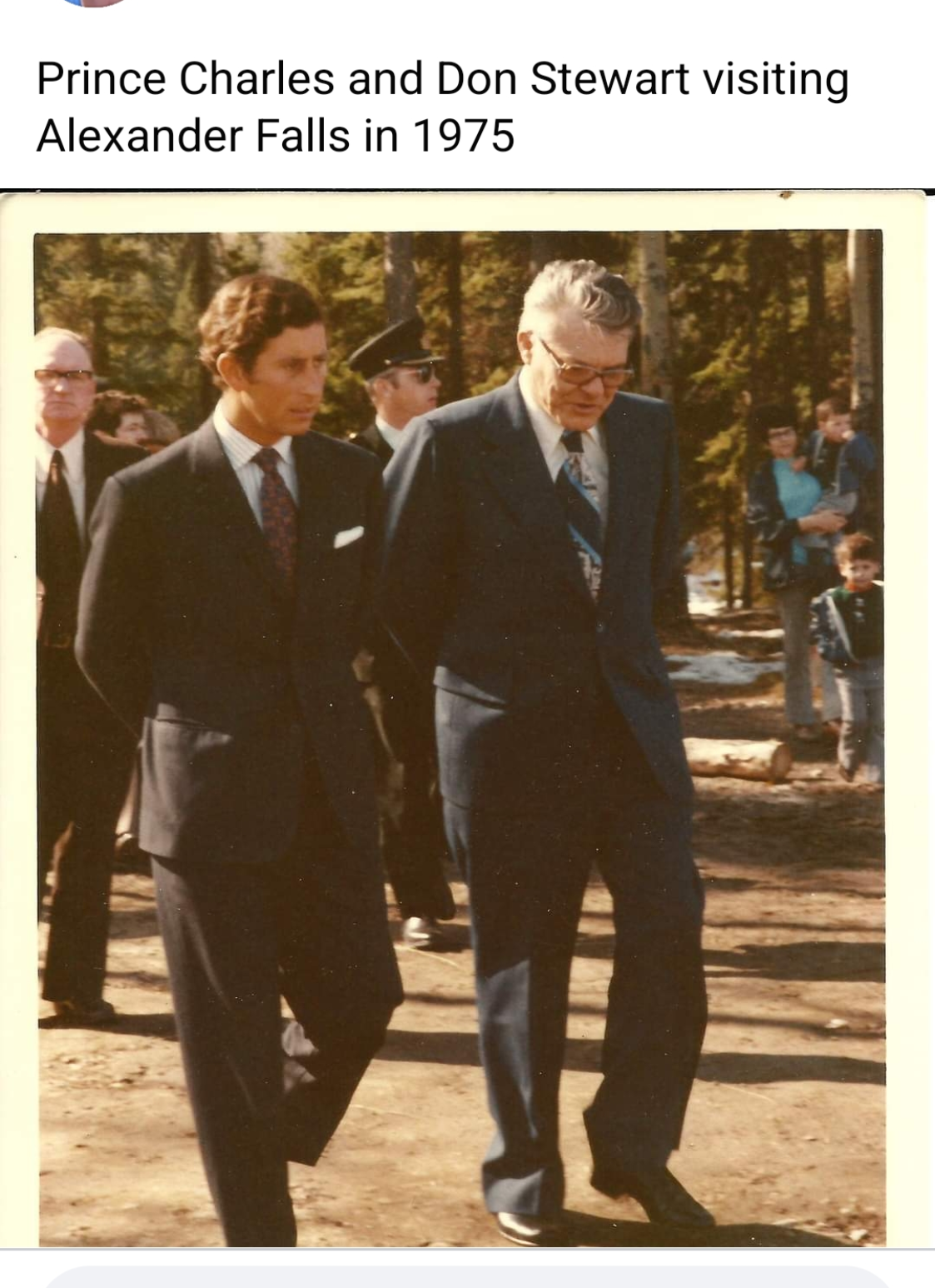 With all of the attention with the Queens death and Prince Charles taking over here is an interesting picture. This is a picture of the owner of Igloo Building Supplies Don Stewart visiting Alexander Falls with Prince Charles in 1975.