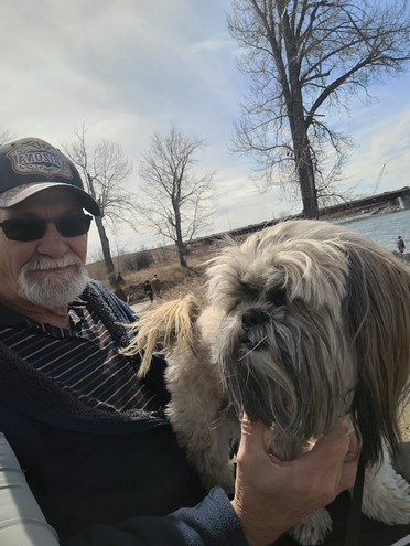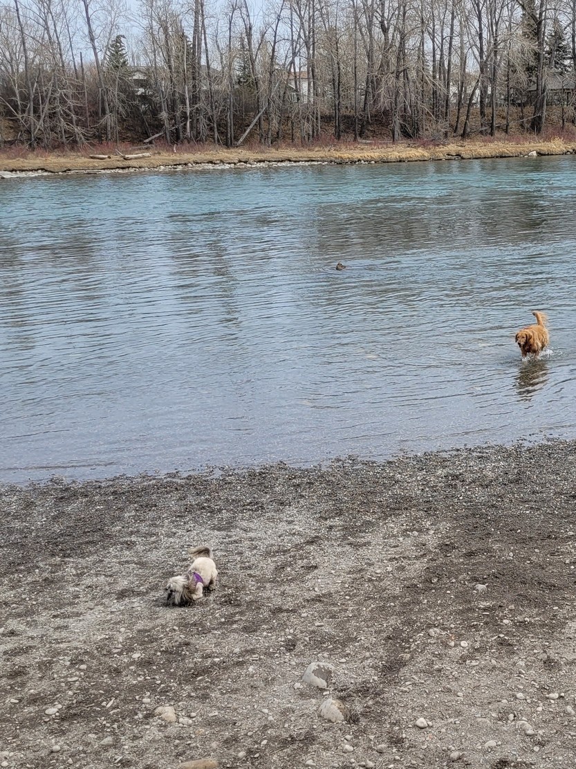 While I was out at the lot Victoria and Jackie took Daisy & Hazel to the dog park at the river. Daisy had her usual running like mad act on hoping some dog would chase her. She would have for sure got in her exercise. Hazel likes the river Daisy not so much. She didn’t want to get her paws wet. lol