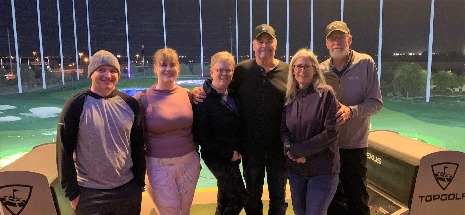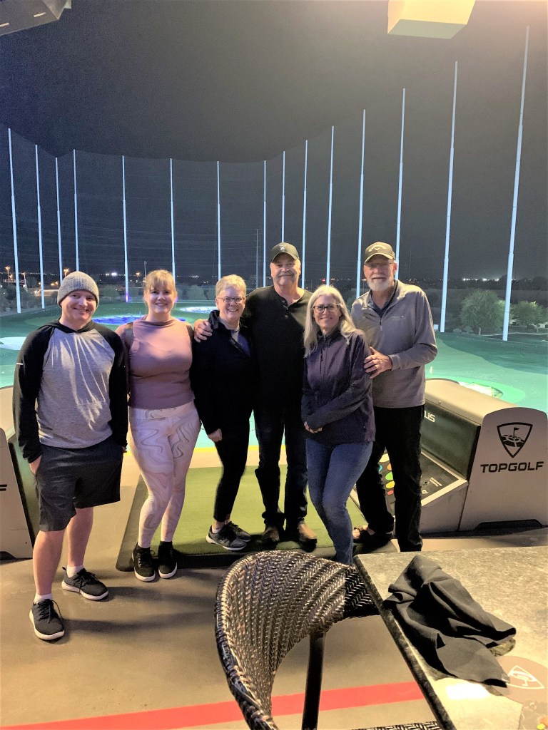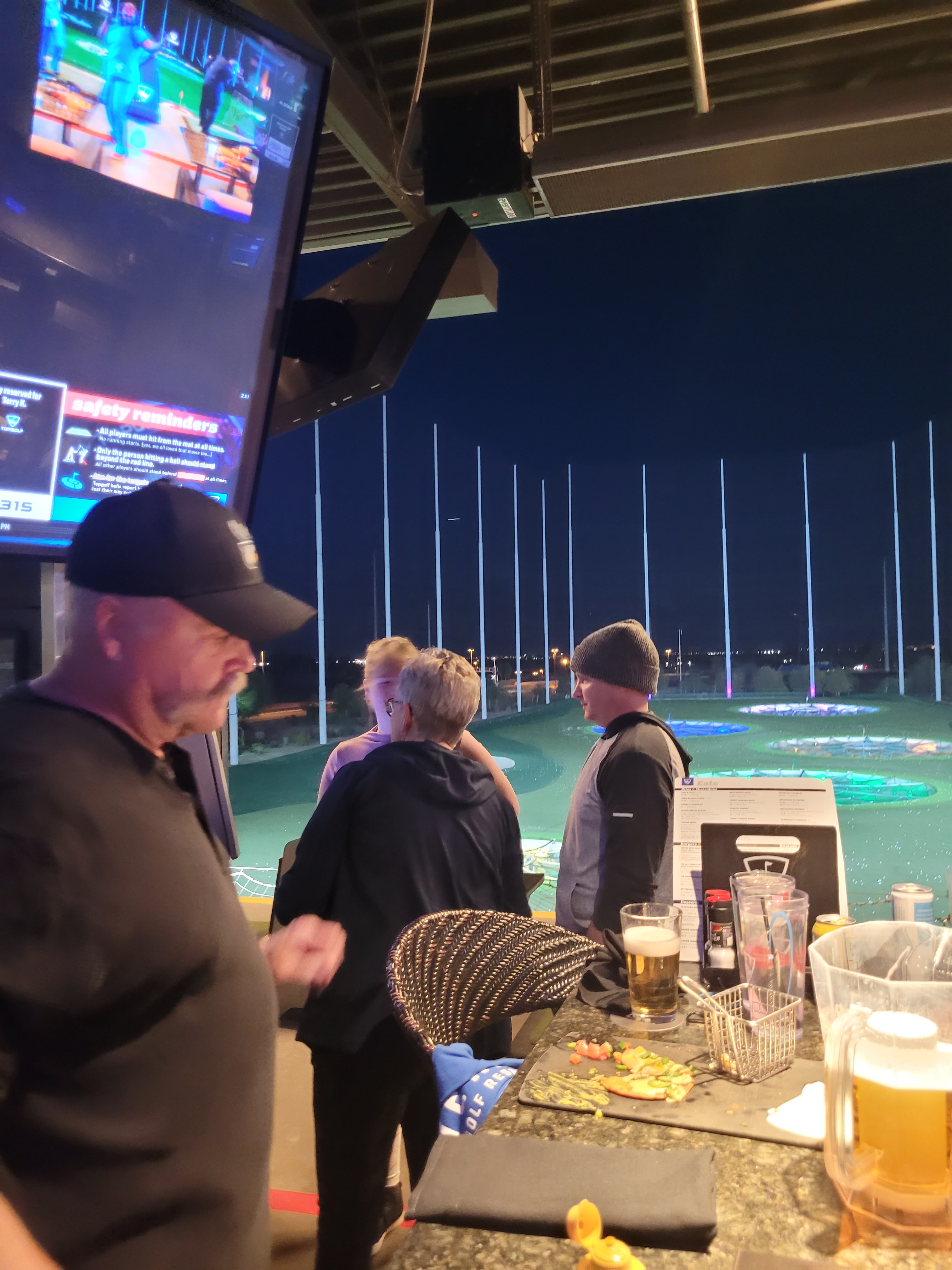 Another great golfing excursion at Aquilla, a fun adventure at TOPGOLF and a fun games night at Fred & Terry place.