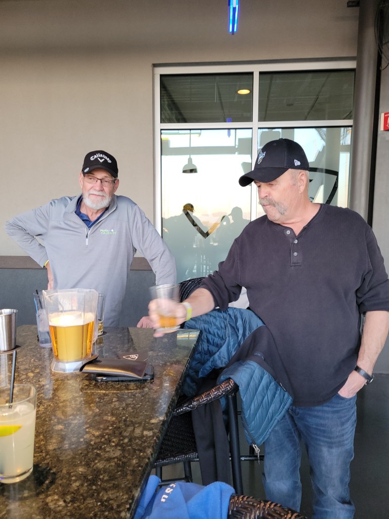 We stopped after golf for a couple of jugs of beer. Cold beer, frosted mugs, on the patio, in the sun is awesome.