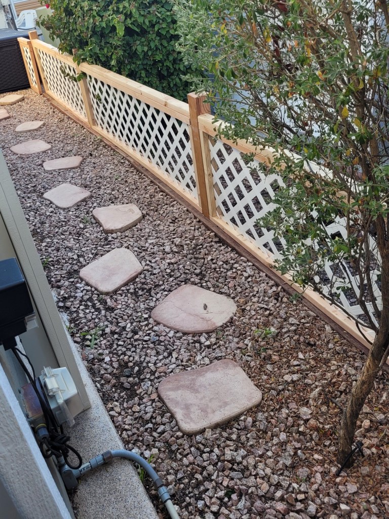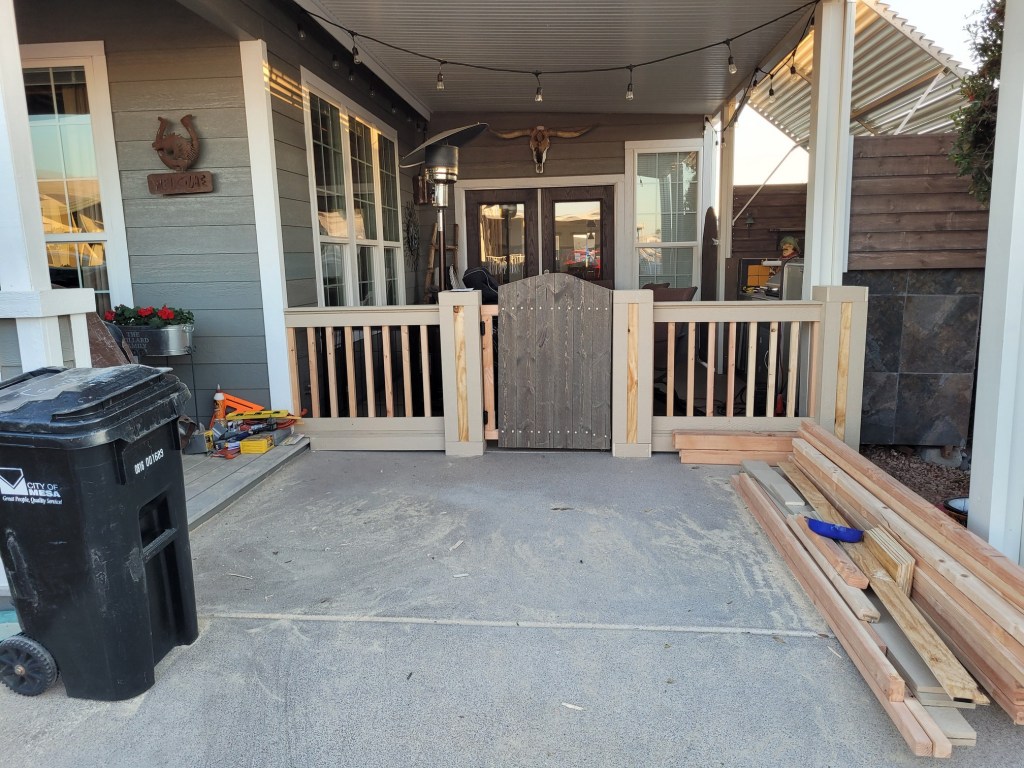 Hilti to the concrete and used thinner stock than the front patio as the cost was unbelievable. The divider plus the small lumber for the side of the house is $600. Sick.