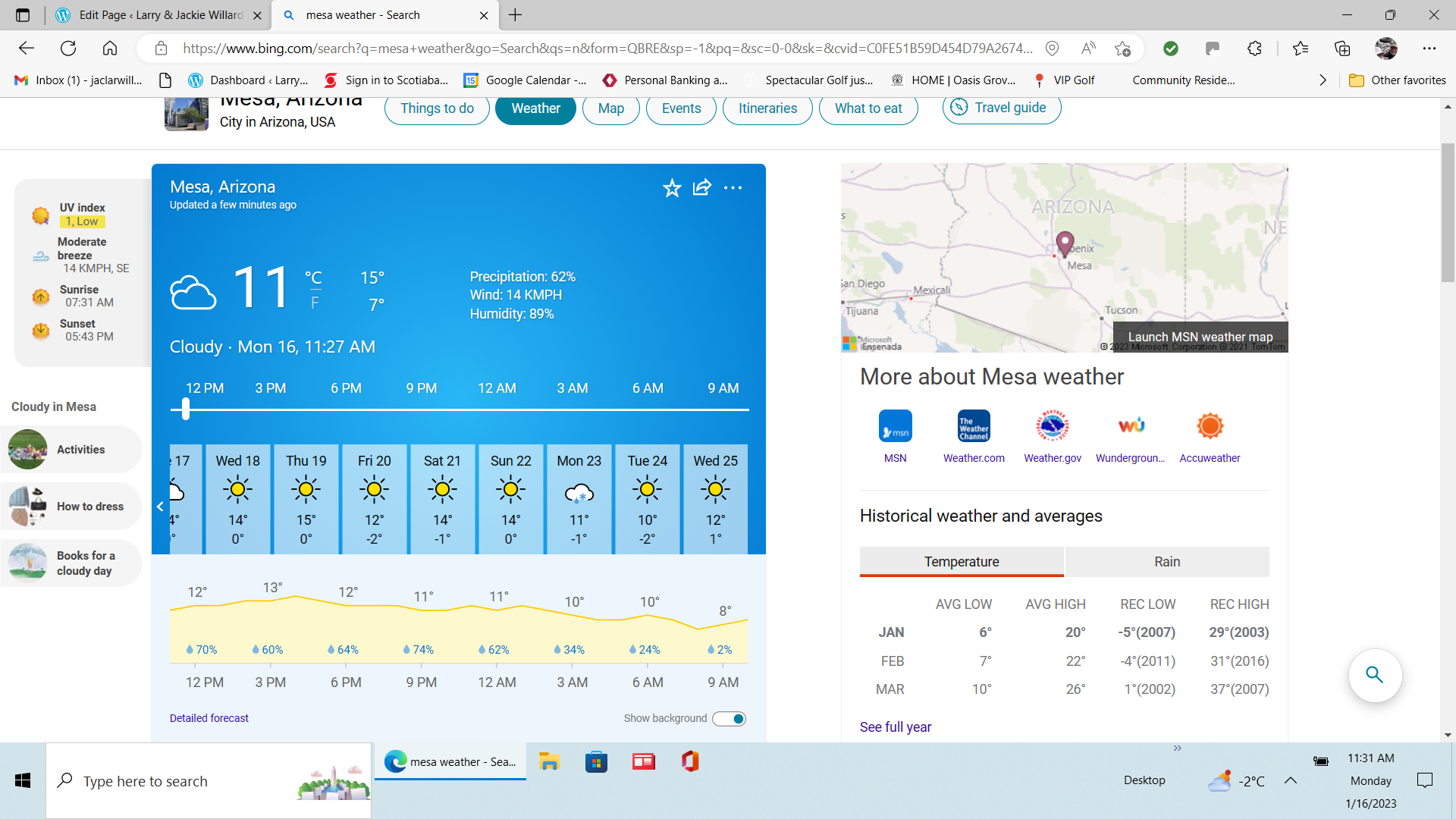Well, we thought December was a cooler than average month here in Mesa and it was being the coldest in 28 years. Yet still shirt and sun weather with the odd rain day but the streak is continuing. January has been unusually cold and the ten day looks like no improvement.