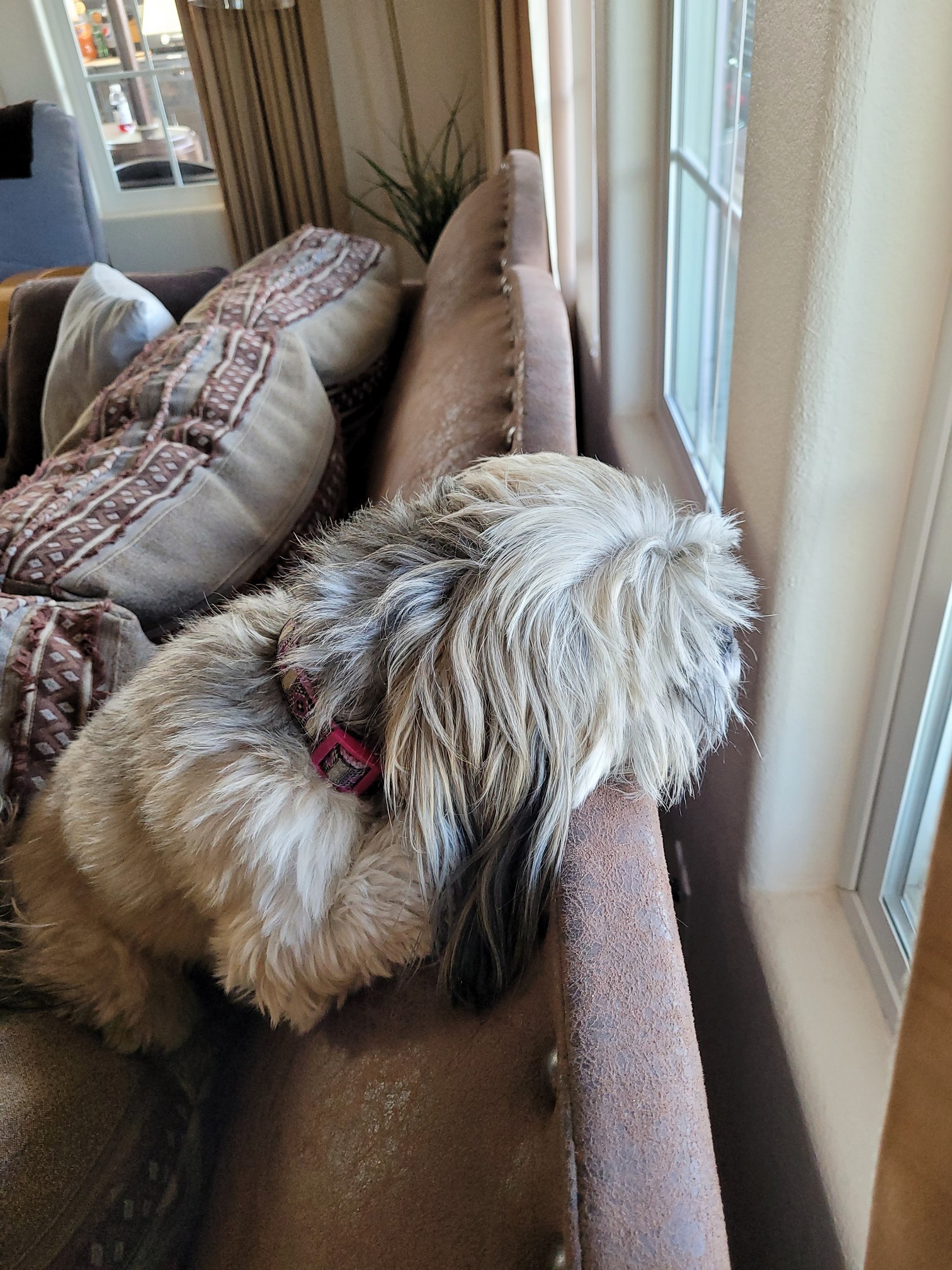 Here is Daisy watching what is going on outside. I say super cute! This keeps her entertained for hours.