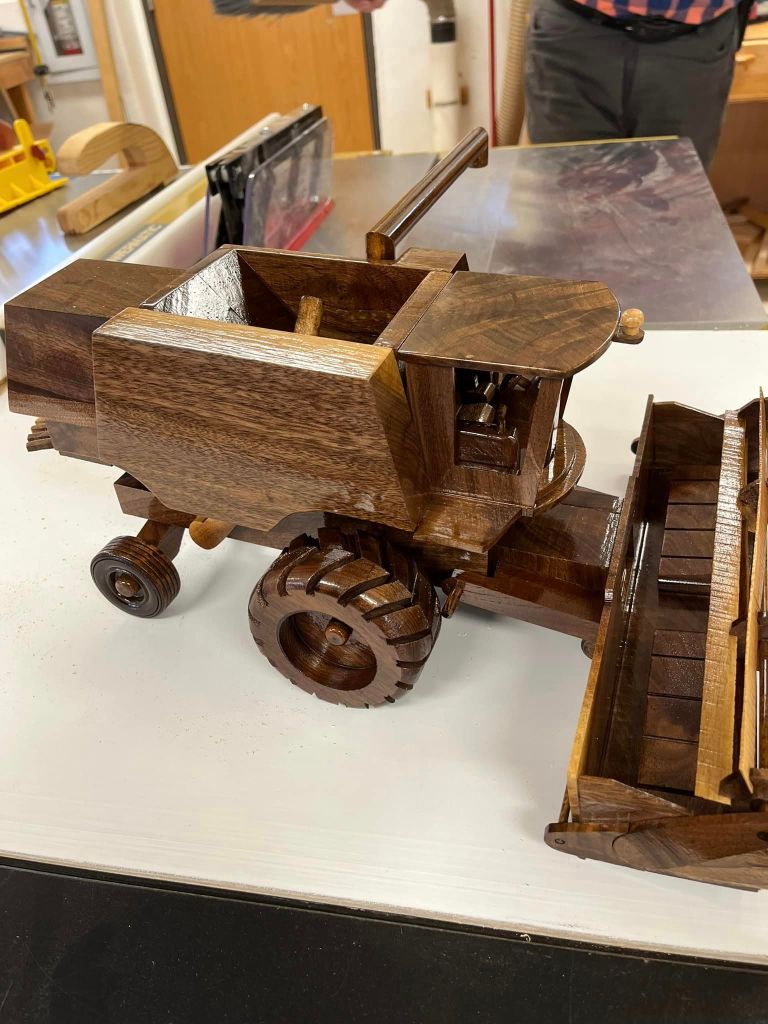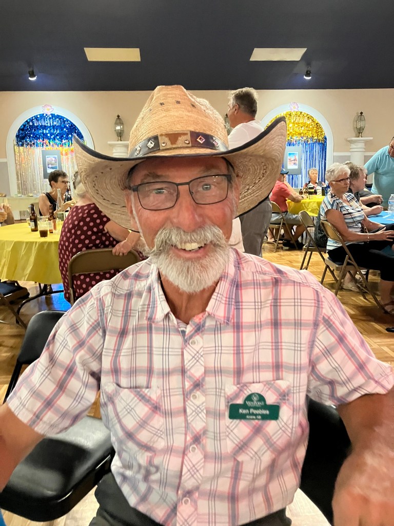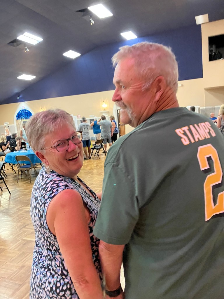 Jackie & I headed to the dance hall as it was the draw date for the workshop golf cart prize. They sold 3000 tickets at $25 for three. We didn’t win so will live with ours. LOL They also have a silent and live auction. Here is something unbelievable. You get two retired farmers wanting the same item and they bid it up to $1000. One thousand USD for a wood replica of a combine that will sit on the shelf and collect dust. Amazing.