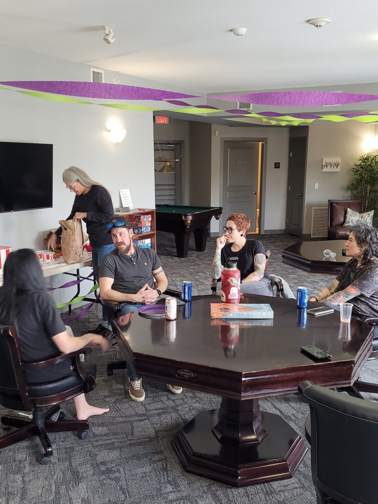 We decorated up the room and had a big birthday and had a nice get together. The boys had a blast playing pool, games and running around.