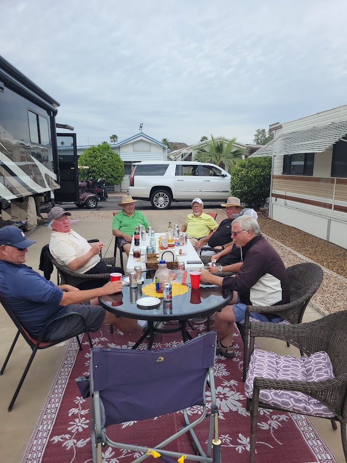 I got everything done. Fixed up the group for golf for the next two weeks, found an error in billing for our hotel for our trip going home, and confirmed quite a busy week coming up with Monday shop for tire install, Jackie ladies golf, Tuesday fishing all day at Saguaro Lake, Wednesday golf league in the morning and billiard night in the afternoon, Jackie golf in the morning on Thursday, my men’s league golfing Friday in park, our year end wiener roast party on Friday night, our Alberta Potluck party on Saturday and Sunday to Fred & Terry’s place for games and a get together. Fairly busy !