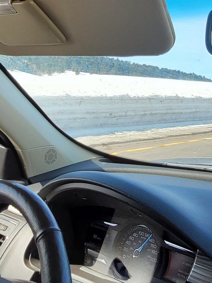 Wow again it shocked me going from 135 to 140 kph to 110 kph how SLOW to feels. Very little snow in southern Alberta though.