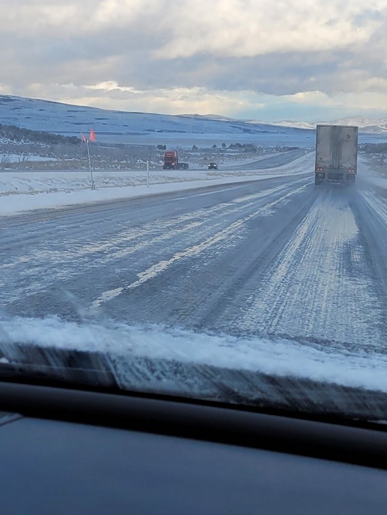 Leaving Cedar City the highway was a mess with trucks and cars in the ditch and ice/snow covered lanes. The speed limit is 80 miles per hour and we were never able to drive faster than 40 miles per hour for 2 hours. Very slippery due to the rain and cold. I was impressed with the semi’s as they normally fly on icy roads, but everyone drove very slow. I had one 4 x 4 follow me for the full 2 hours. A little hard on the eyes with the concentration needed plus the fact you wanted to stay on the road. Two hours and then only wet roads for a few hours then dry roads for a couple then more wet roads. But after the two hours of 40 mph I pumped it up to 90 mph to make up some time.