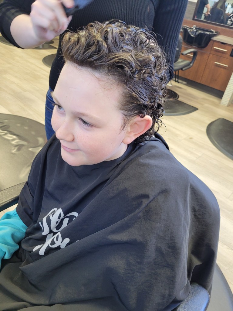 It looks good and he loves it which is good as I remember years ago Jessica did the same thing and came out of the Salon crying.