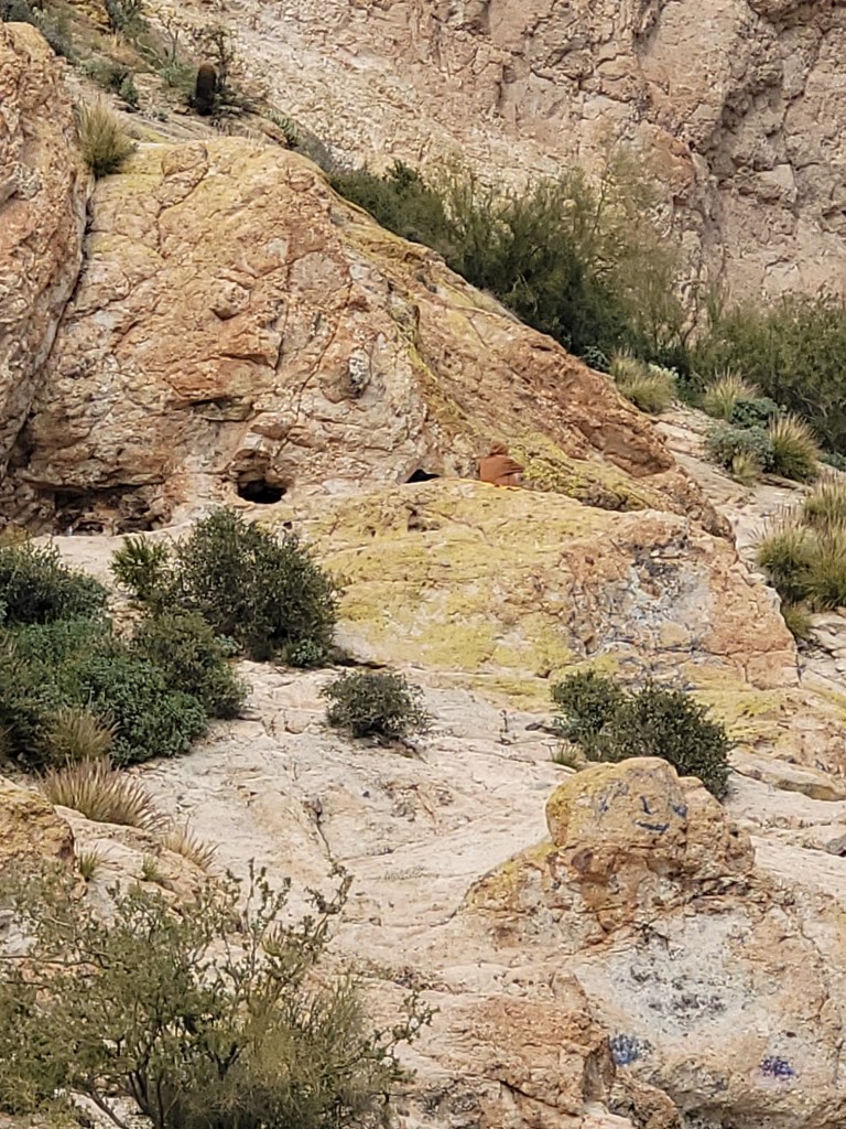 At least 3 miles away from the marina Fred & I see this young girl on the cliffs edge of a steep incline hanging out. An extremely difficult place to be and odd as she was all alone and wearing shorts and hoodie. Fred waved and she waved back and then when I go to take a picture, she cuddles down and you can barely see her. I hope she makes it out of there safely.