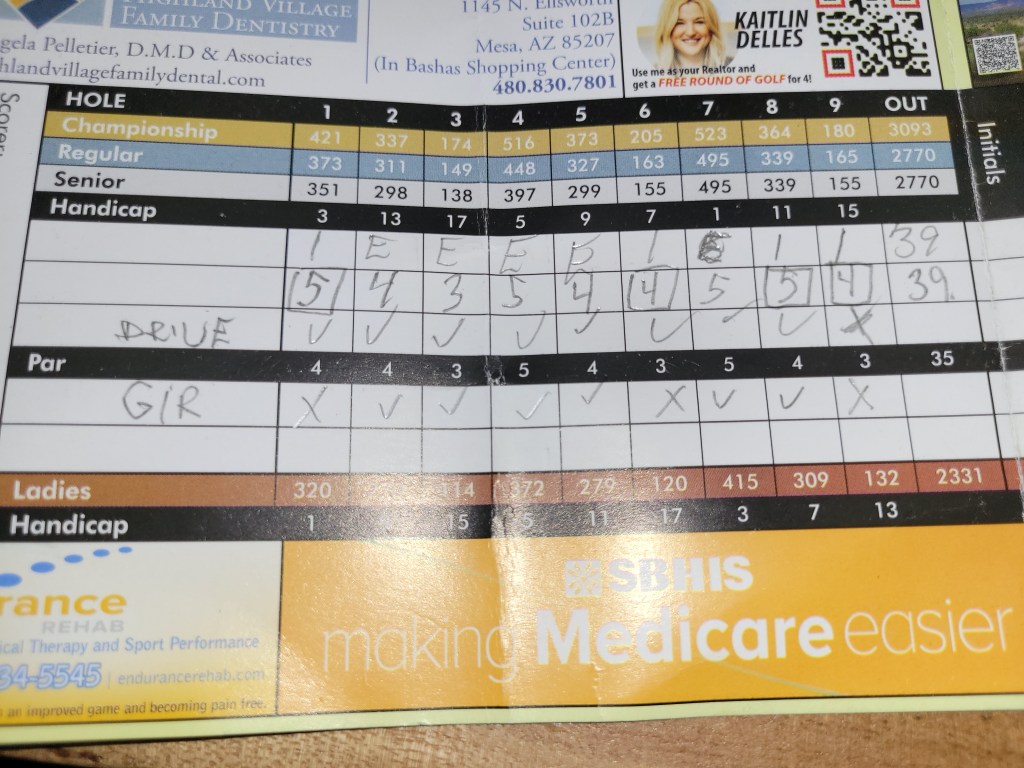 Two birdies the front nine and one on the back nine. At least three more missed ones. I drove spectacular today, GIR quite often and putted decent along with the odd mistake thrown in.