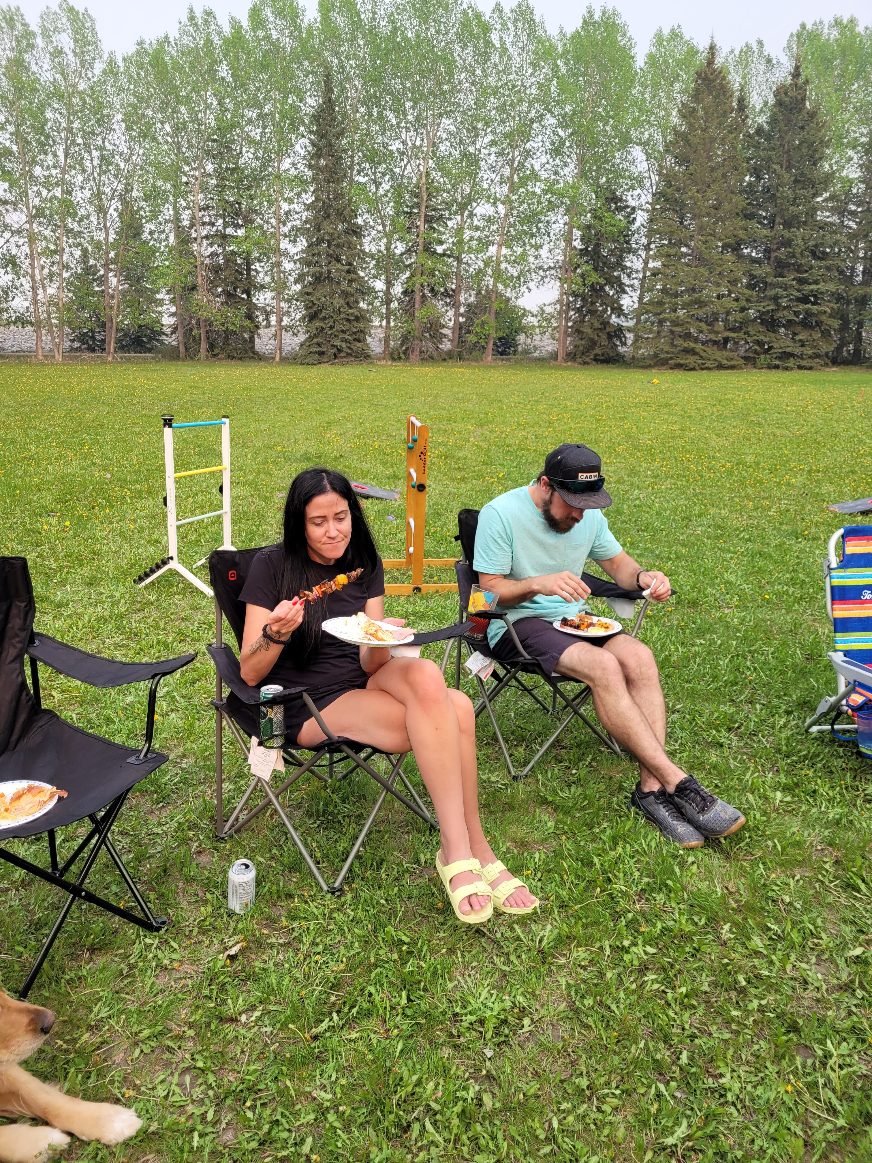 The group site was perfect as we circled it and played our games in the open field. We had a round robin elimination event of Bocci, Corn Hole, Ladder Golf, Horseshoes and Disc golf. All were fun with Disc being the hardest for most.