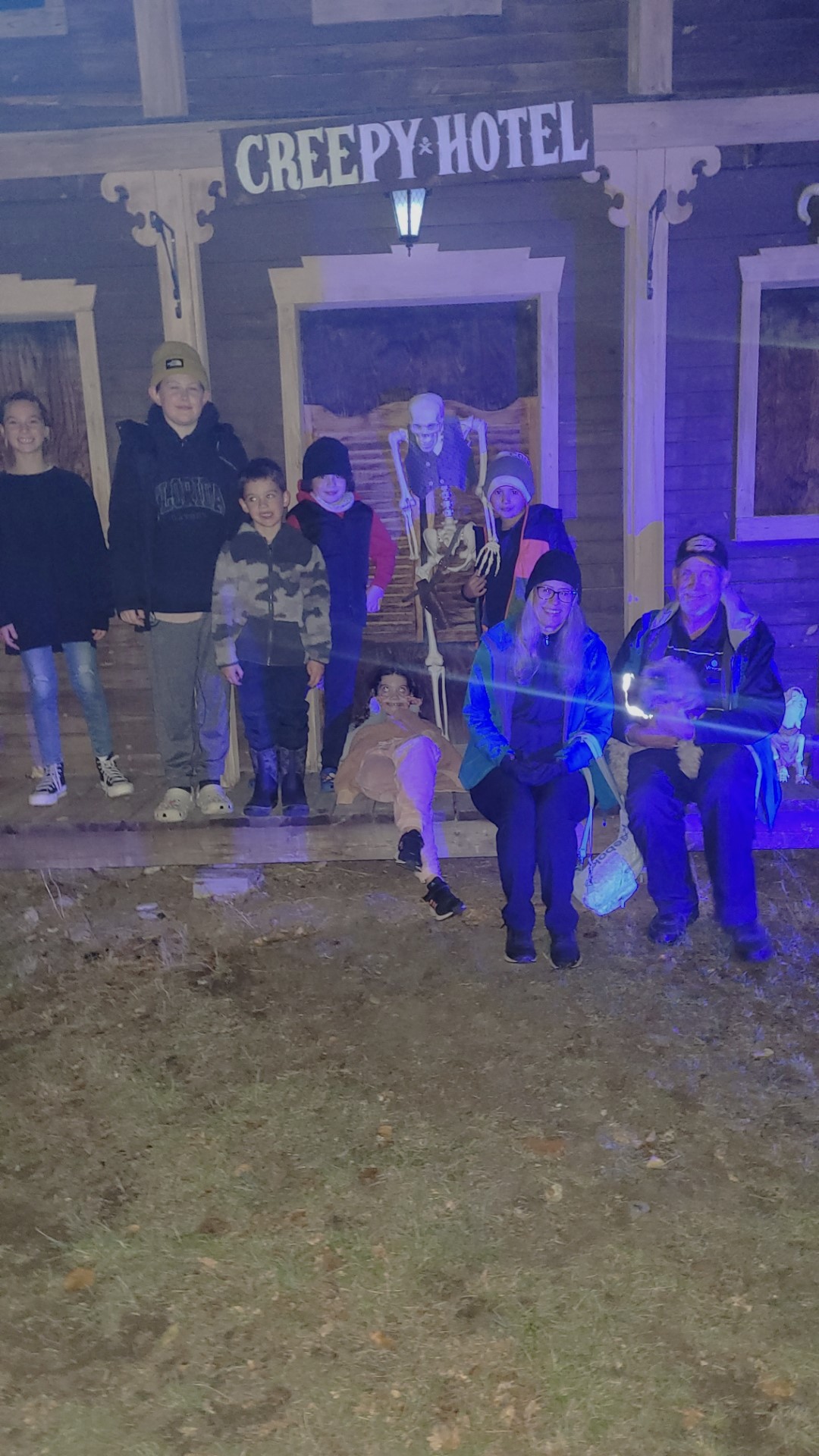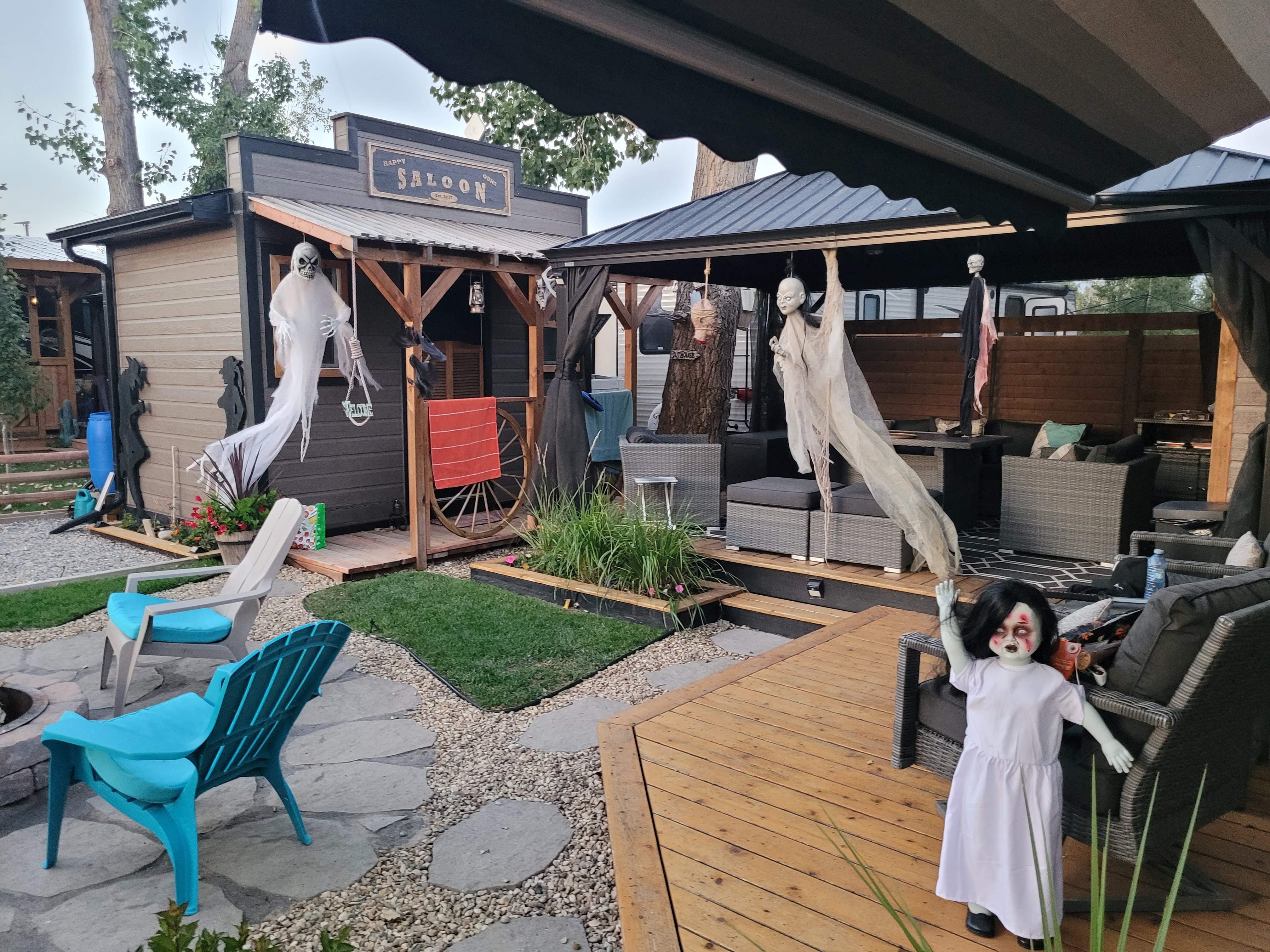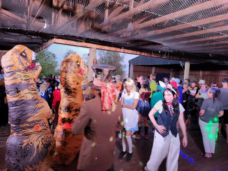 A little disappointed in our park. Not one kid came to the door and I had candy. A huge turnout for the dance with some incredible costumes as per pics. A few homes decorated.