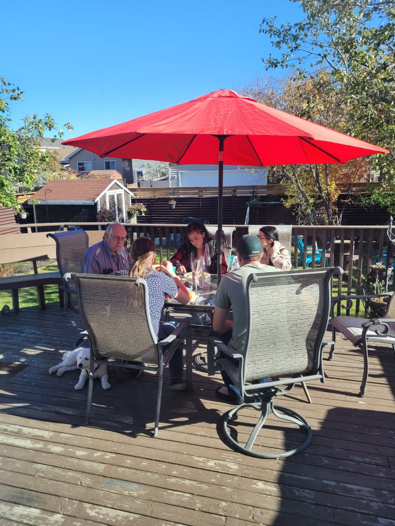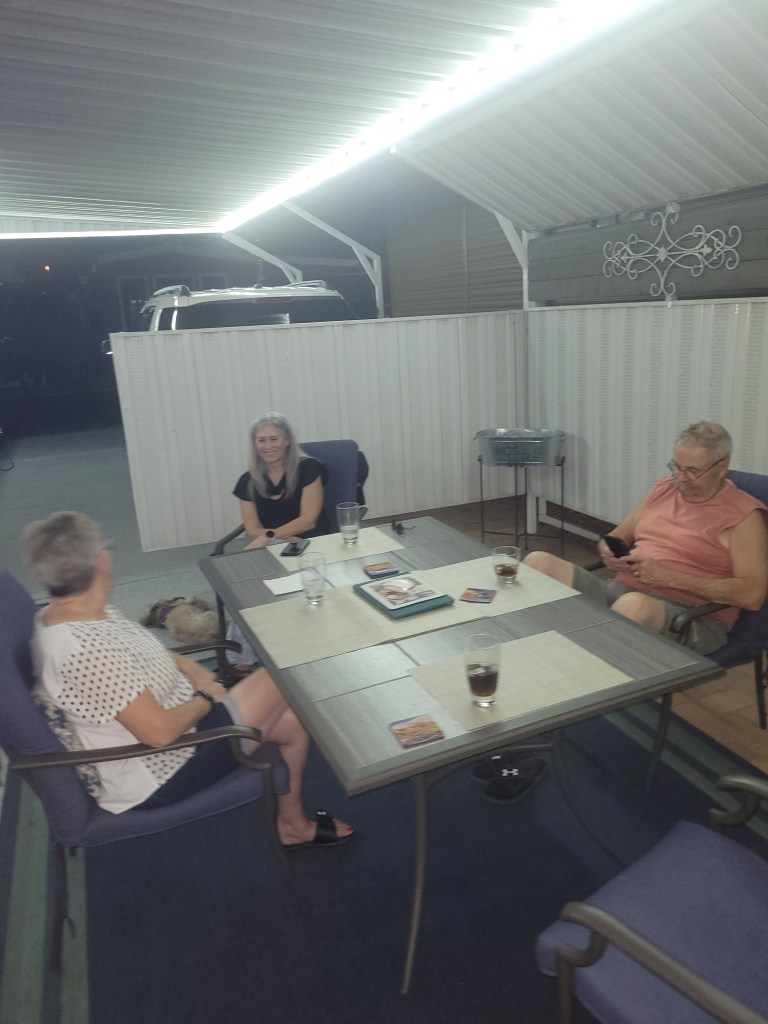 We went over to Fred & Terry’s place for a gathering and supper. Terry made us a wonderful Mexican fajita night. I assembled a great Fajita. It was an excellent visit and fun night sitting outside at 8 am and it being over 20 degrees. Wonderful. Daisy was so happy to see them again. She even remembered her pee spot to go to.