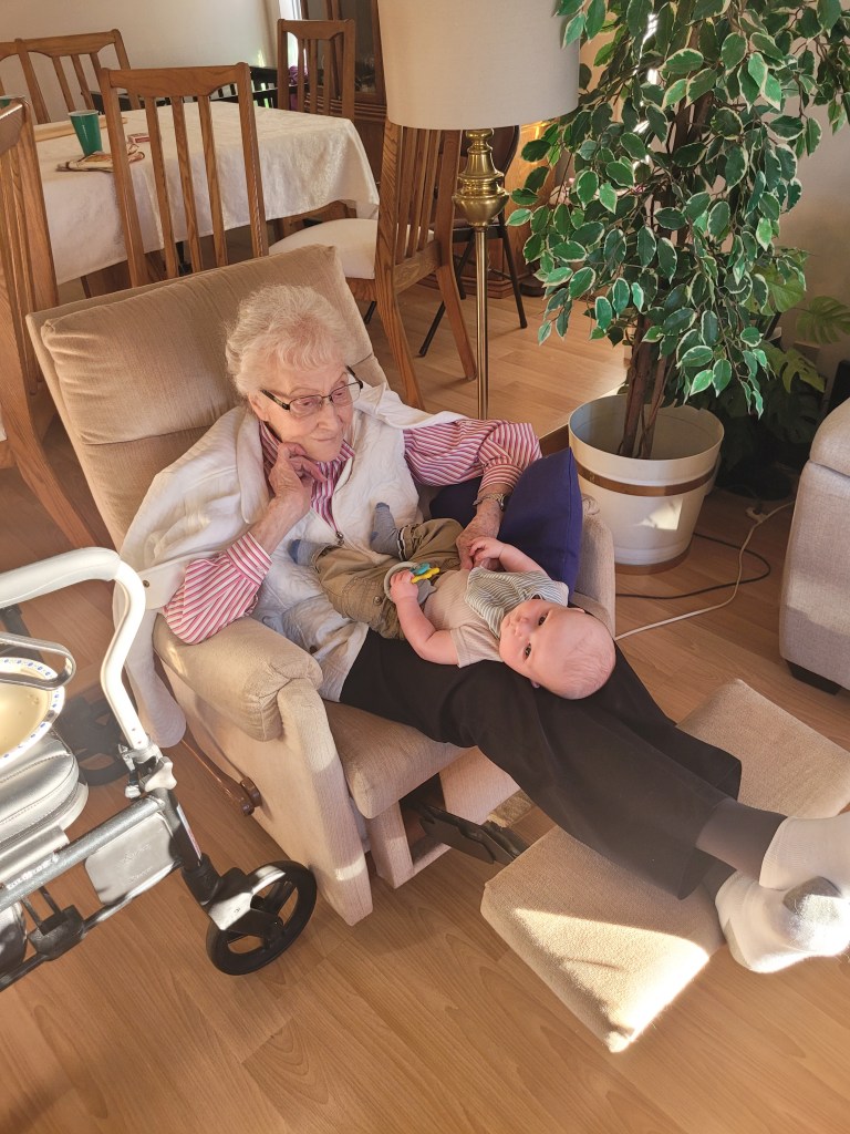 Here is my Mom at 91 years old with her youngest great grandson Gabriel at 3 months old.