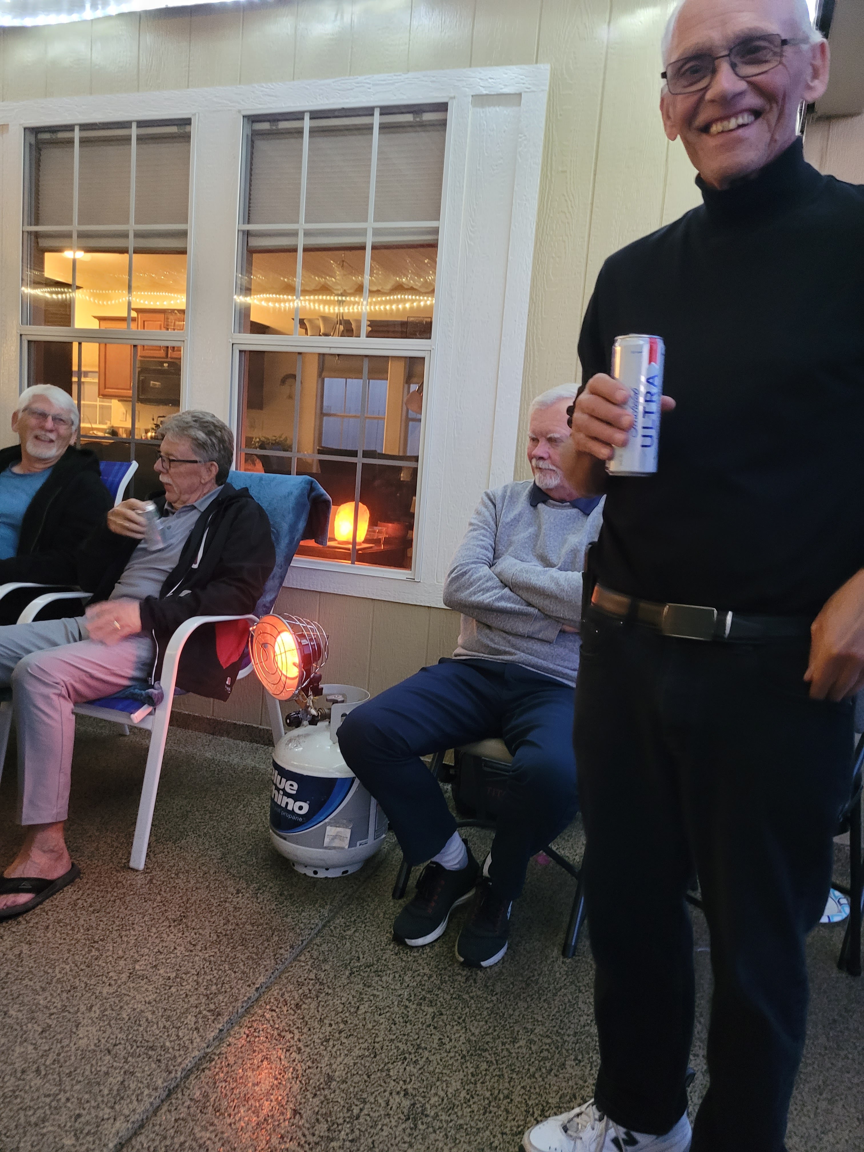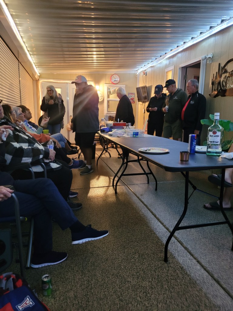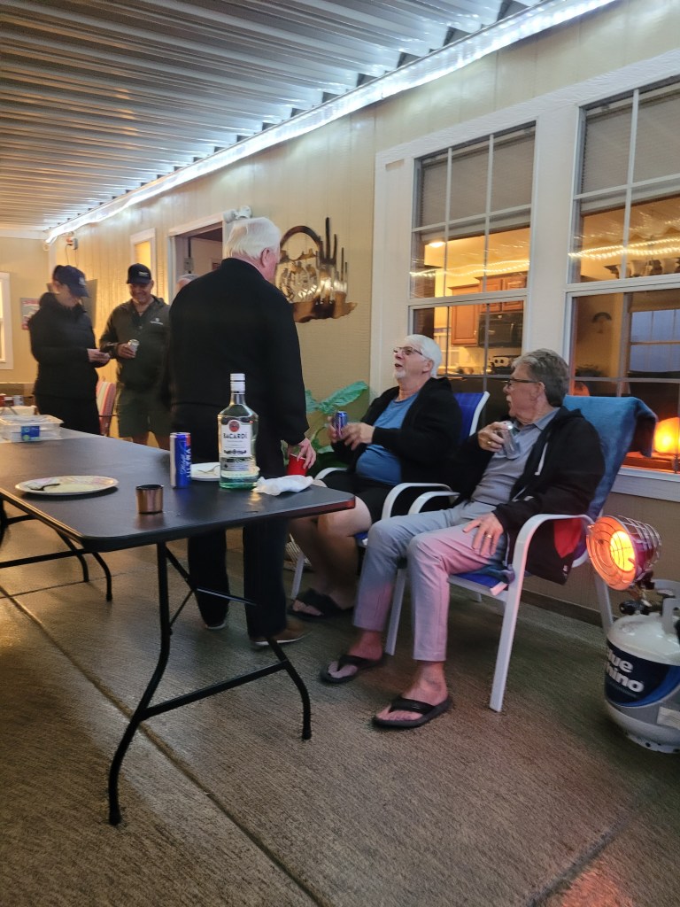 I had my VP golf ( at 8am) but now the weather is like 18 above at 9 am so nice. I golfed pretty decent but tied, did not win or lose any money. Mid 80’s score again only due to errors. A fun day again ending with Ron buying us drinks and finger food on the patio.