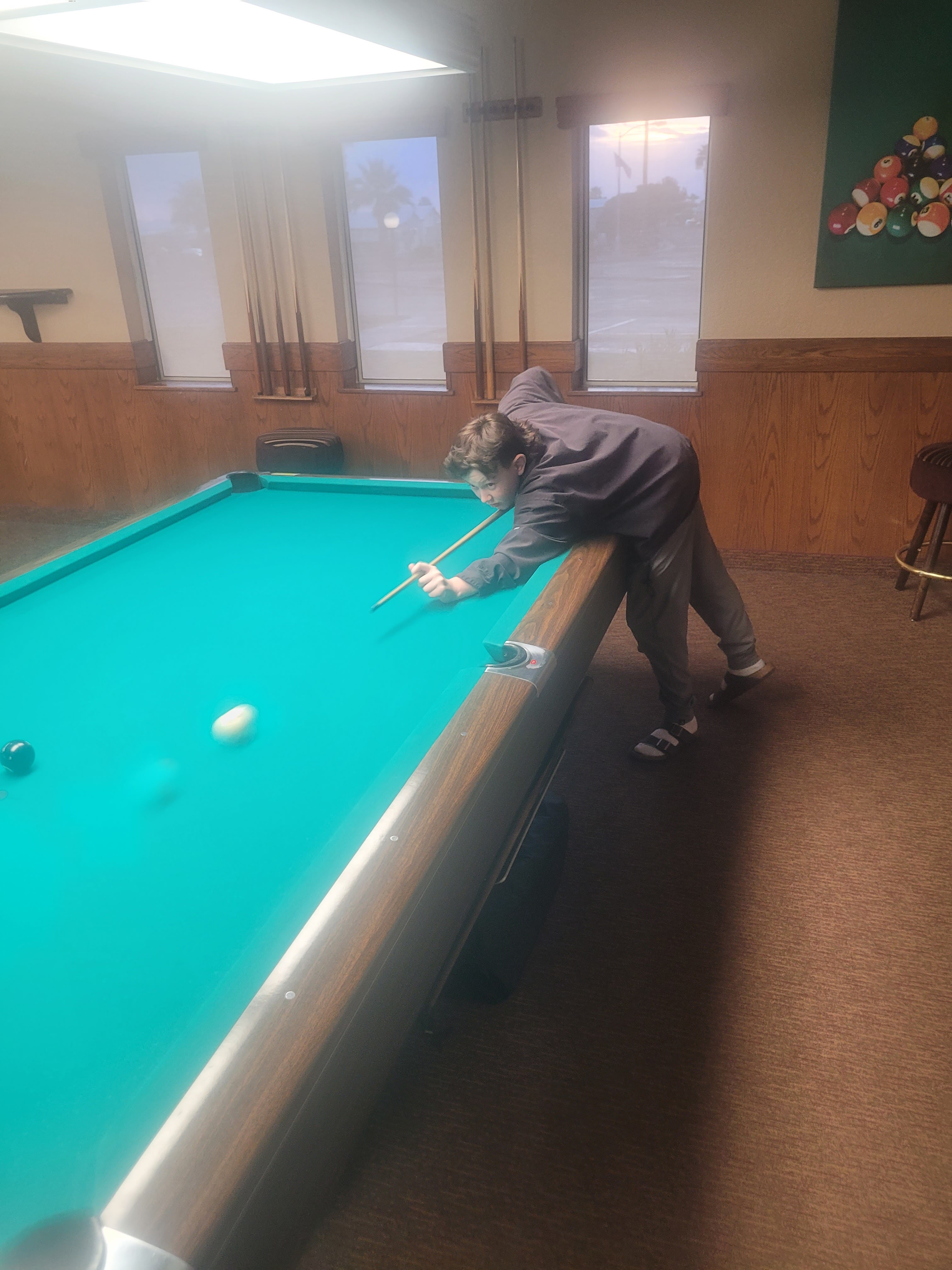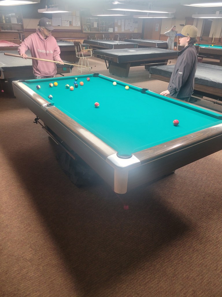 We met Russ & Carol at the billiard hall right on time. I really enjoy playing pool. Guys against the girls again and another win for “mankind”. I played very well as did Russ. The games all were very close so made for a fun event.
