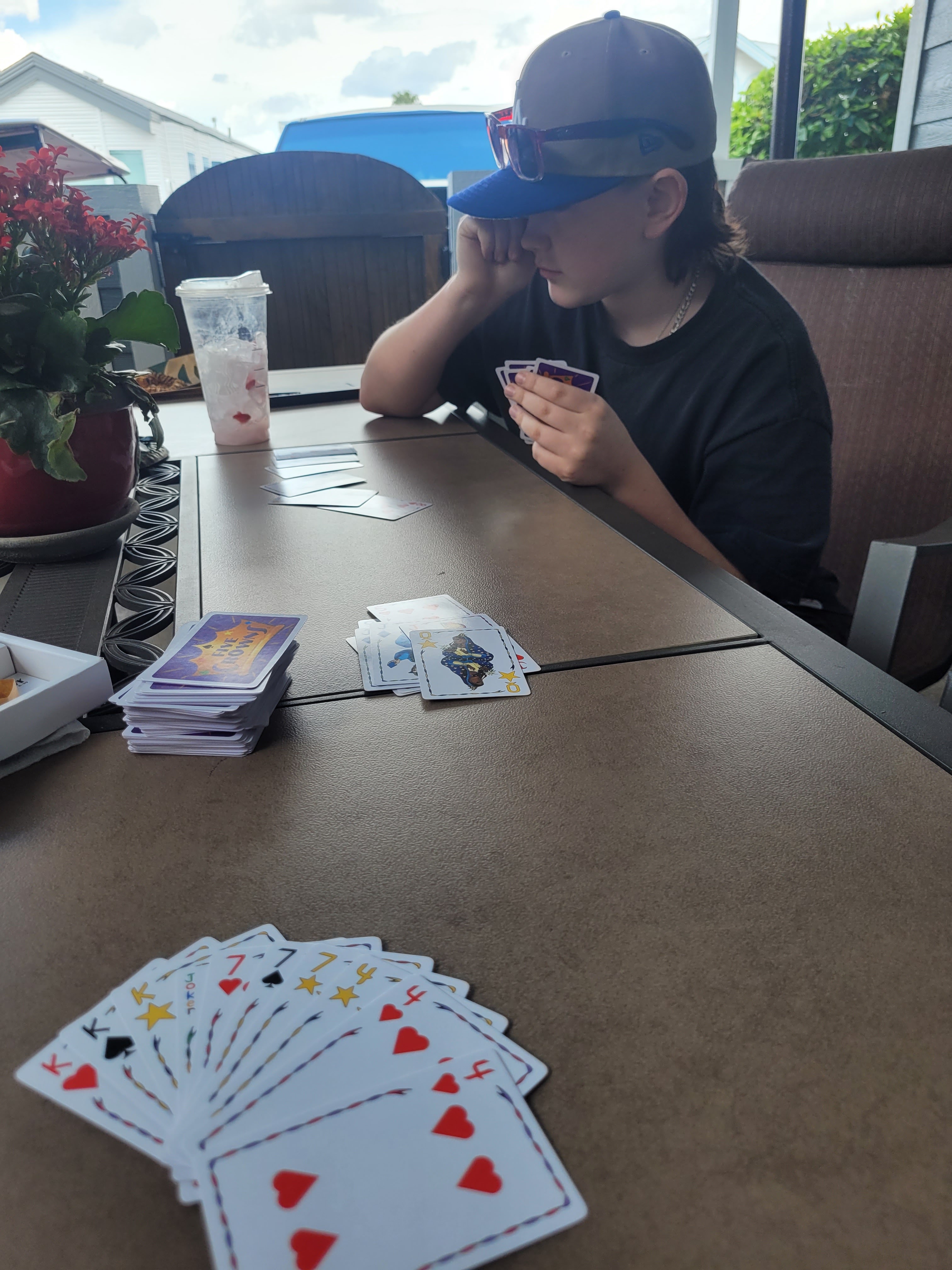 Jackson and I played 5 Crowns on the patio and after the game I am sure he is ready to take on the Keys. He learns quick and it is a fun game.