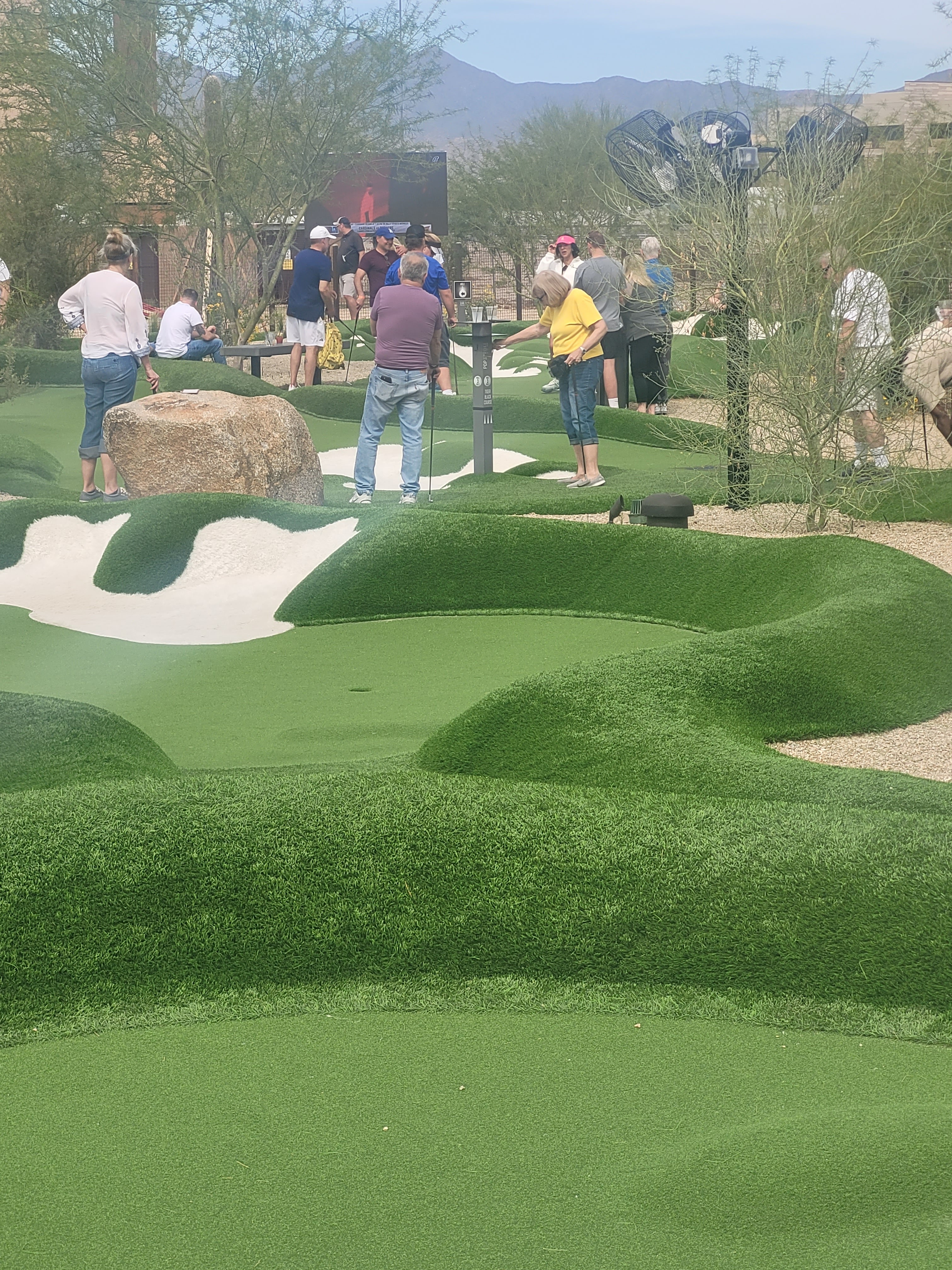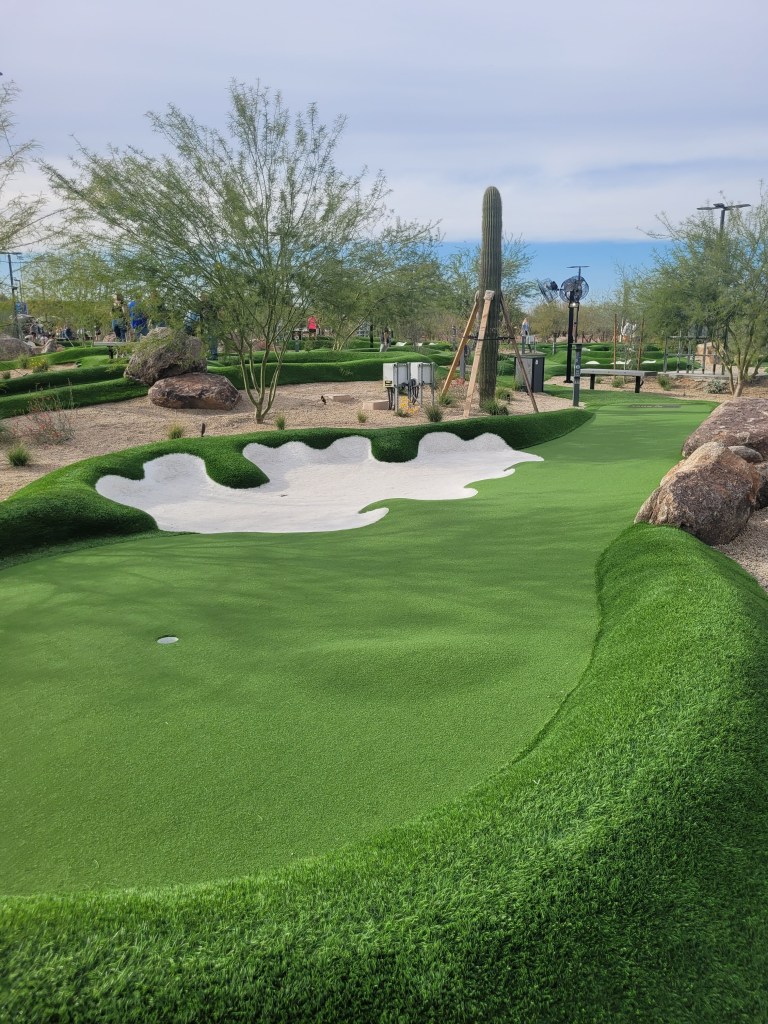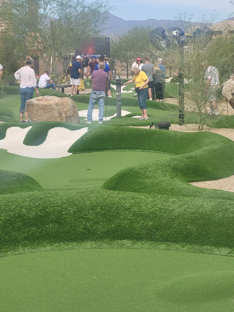 We had a blast and the 36 holes plus extra’s took us at least 4 hours to play. the first course Jackie killed Jackson and I. The second course I got lucky to win and was surprised as Jackson went on a tear with 2’s on a whack of holes. But the creme de la creme was Jackie getting a HOLE IN ONE on this Tiger Woods designed course, albeit a mini golf course. LOL