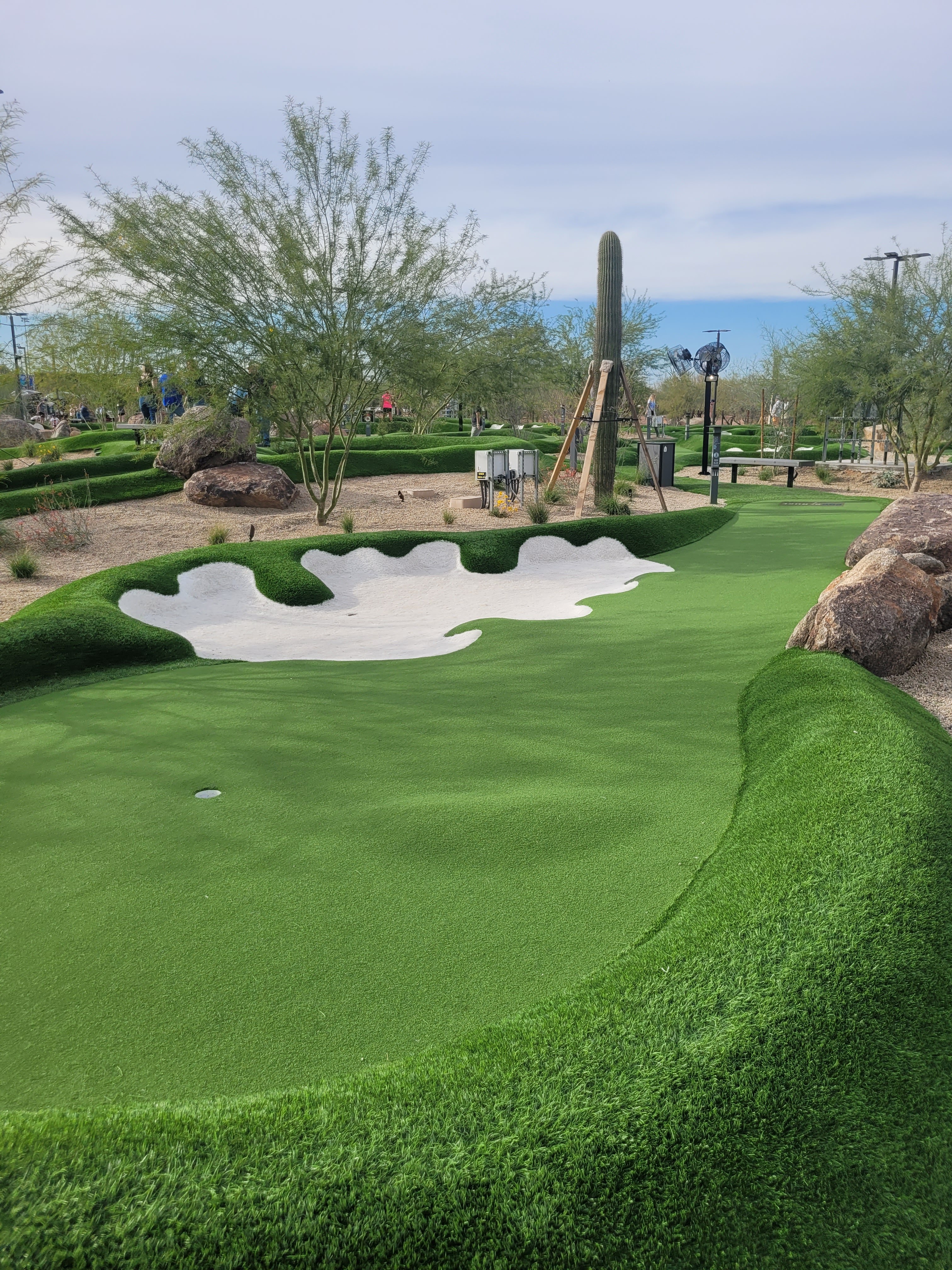 We then decided to head to Tiger Woods special PopStroke mini golf center. All kinds of reference to Tiger which it should as he does own it and designed it. Now the Pebble Beach golf in Calgary is great, this is fantastic. It has two 18 hole courses and a challenge hole. The courses are exceptional in design and the place was packed as it is spring break. Dates, kids, old people all were having fun. Not only the golf but we played Foosball, they have ping-pong, and corn hole also and a awesome dining seating area.