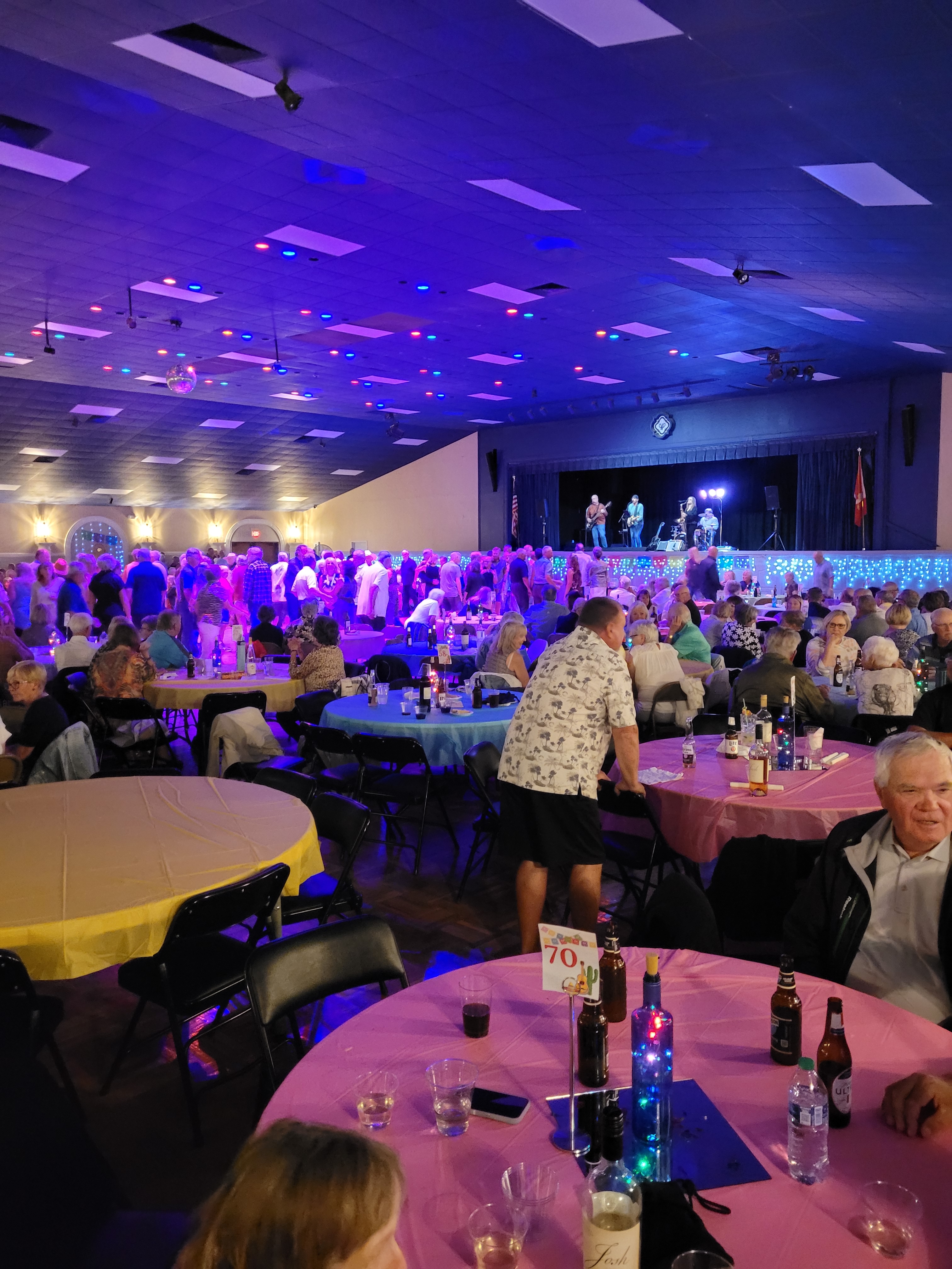 I quick afternoon nap at 2pm and then to get ready for our Farewell Dance. Fred, Terry and Tim were at our table. The biggest party for us this year with over 650 people in the dance hall. The table at the back to allow us to converse is nice.