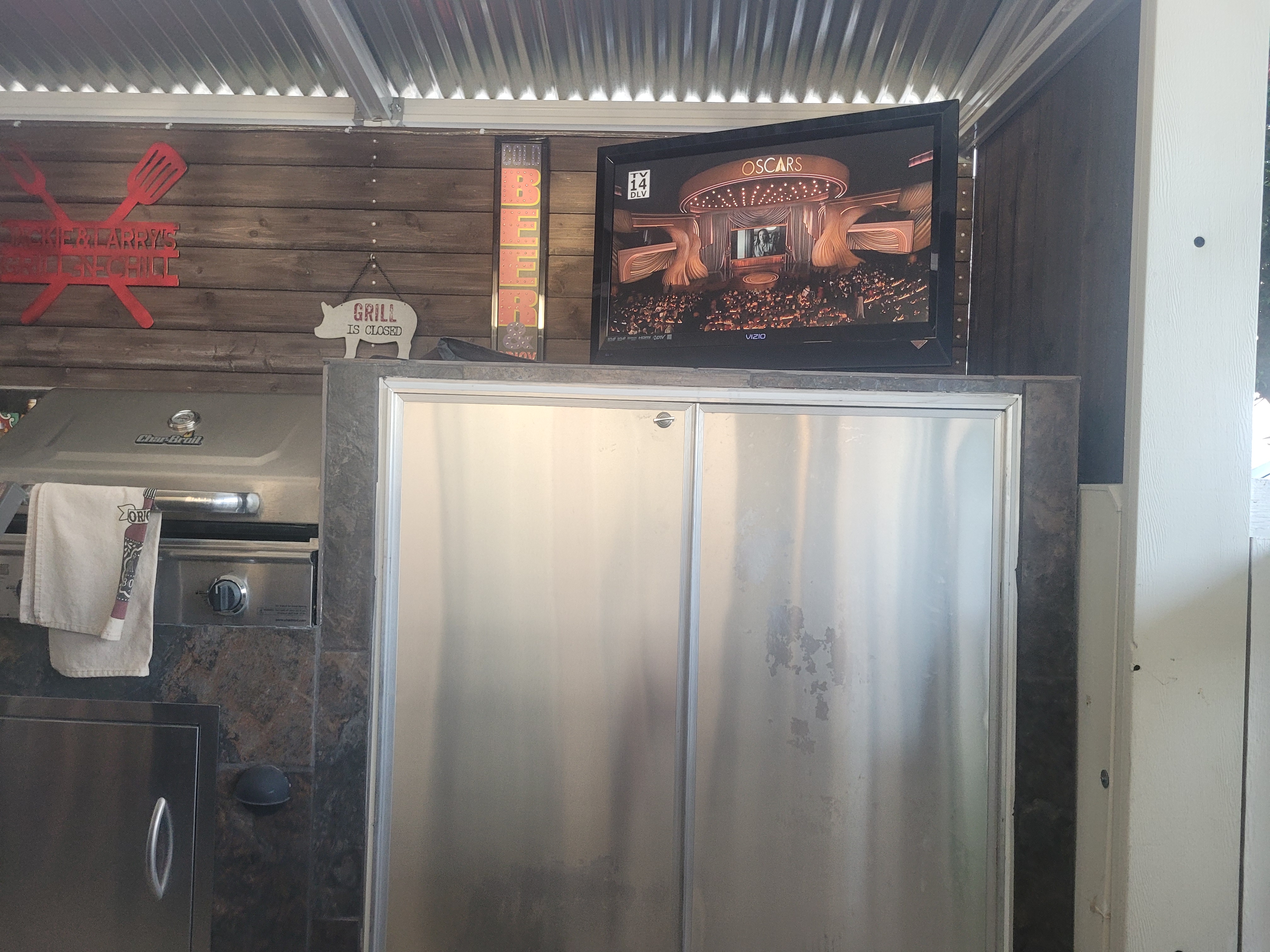 I got home and Jackie was working like a mad women and had a huge amount done already. Then with Jackson’s help we started putting everything away. Getting wet and putting away wet stuff isn’t the best. It is like camping and on the last night it rains and having to put everything away. We did good and got it all put together like a lego puzzle and tarped. My gate is the exact sizing to allow the back patio furniture and deck box to fit into the front deck. I am not covering my outdoor kitchen anymore as with the new roof it is pretty protected and i will power wash off the dust in the fall. I was surprised how fast we did it all. I guess after a full ten years you get the hang of it and another 7 yrs of part closing up we have experience. lol