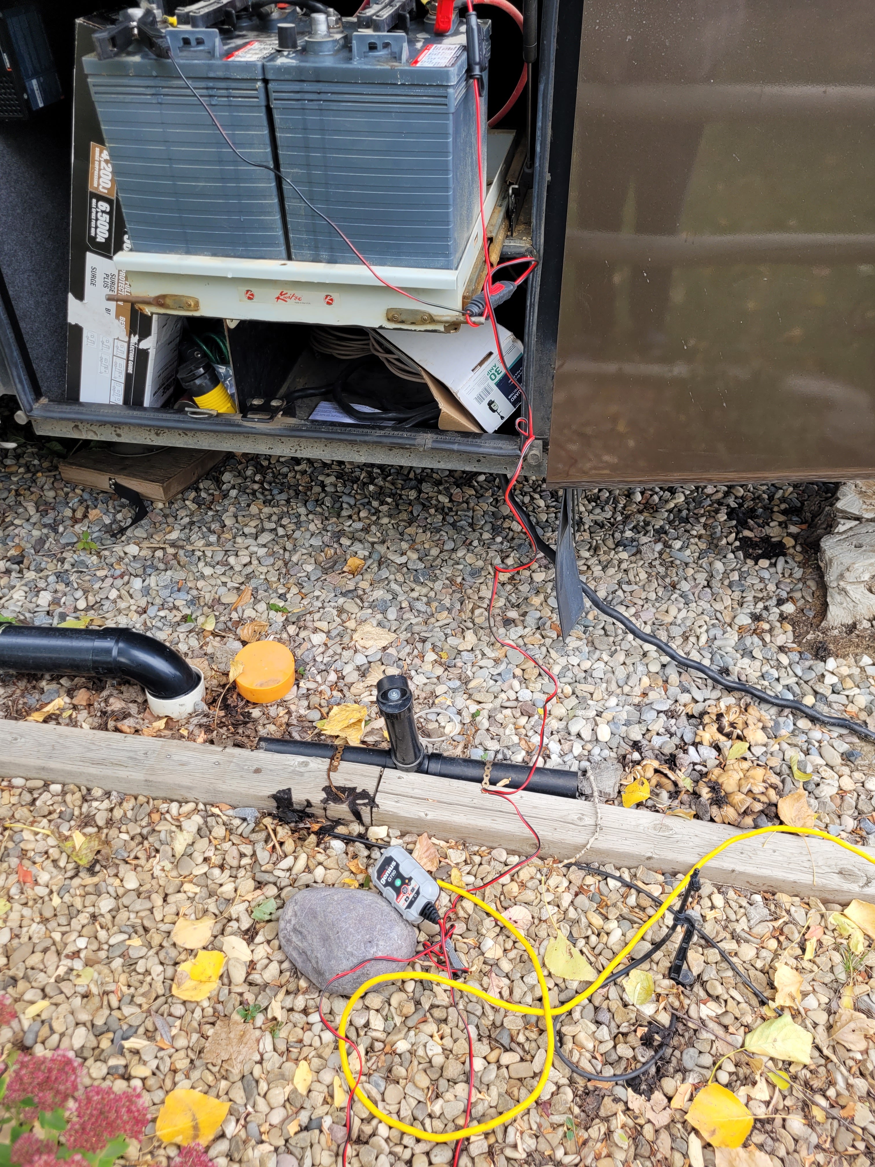 So I started to finish all of the winterizing needed. Plus, finish off a few outside things, Still took me a full day. I installed my center support beam for the gazebo. Then, I placed my mouse seed and traps in the shed and motorhome. It took the least amount of time in the last 9 years of this motorhome to finalize the antifreeze. I bought two jugs and managed to complete the process with only one. My cheat sheet worked well. I still have one bypass that isn’t working correct but it is safe and will not freeze anywhere. I removed all of the decor items and put them in the shed. Pulled in the slides and lifted the levelers. I charged both the engine battery and the carriage batteries. These batteries are 9 years old and still test 100%. I take good care of them. I make sure they are fully charged. I remove the draw for winter. I have a solar trickle charger for the engine battery and the rooftop solar charges the carriage batteries.
