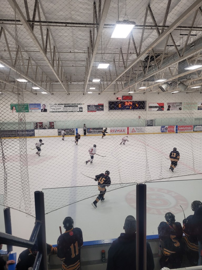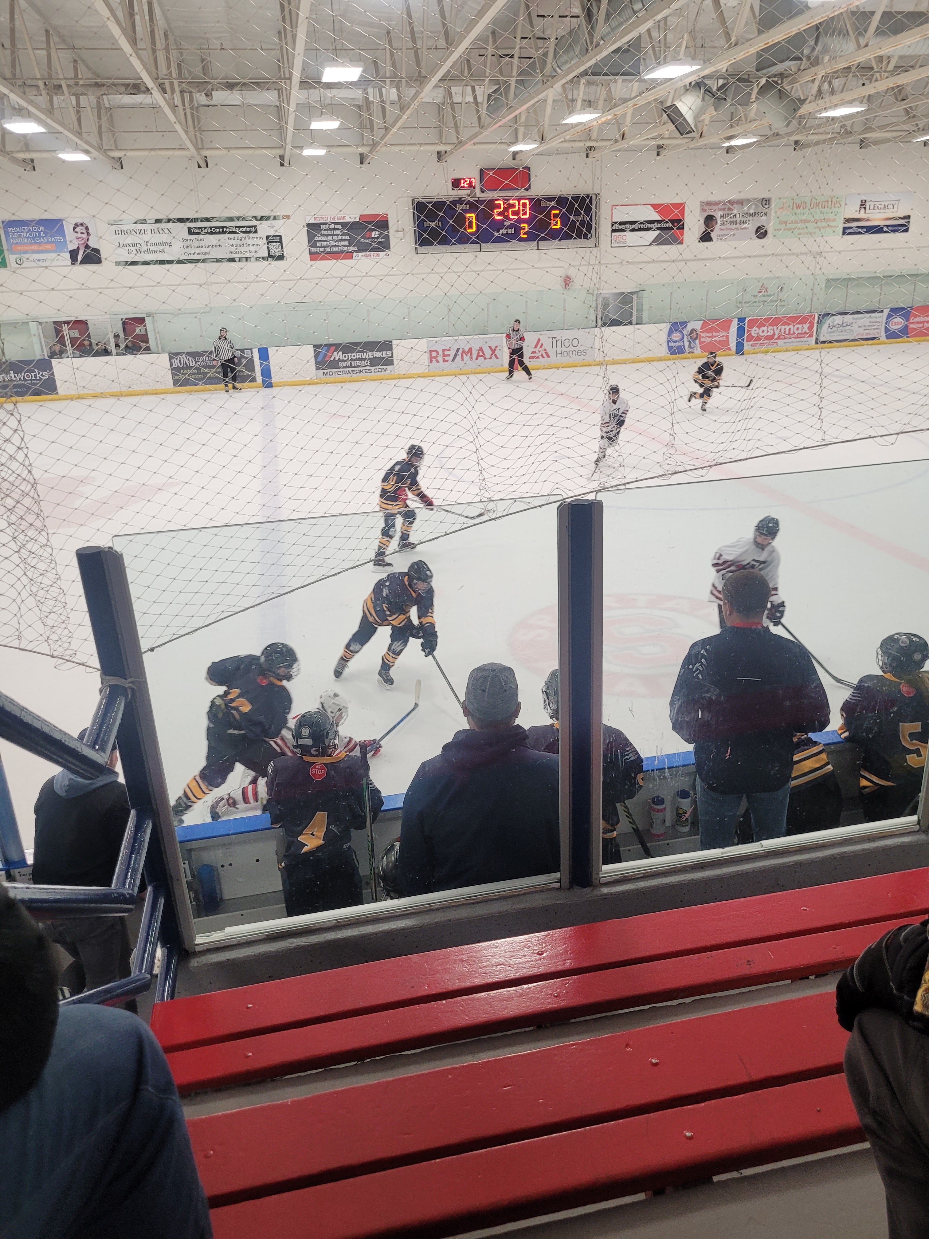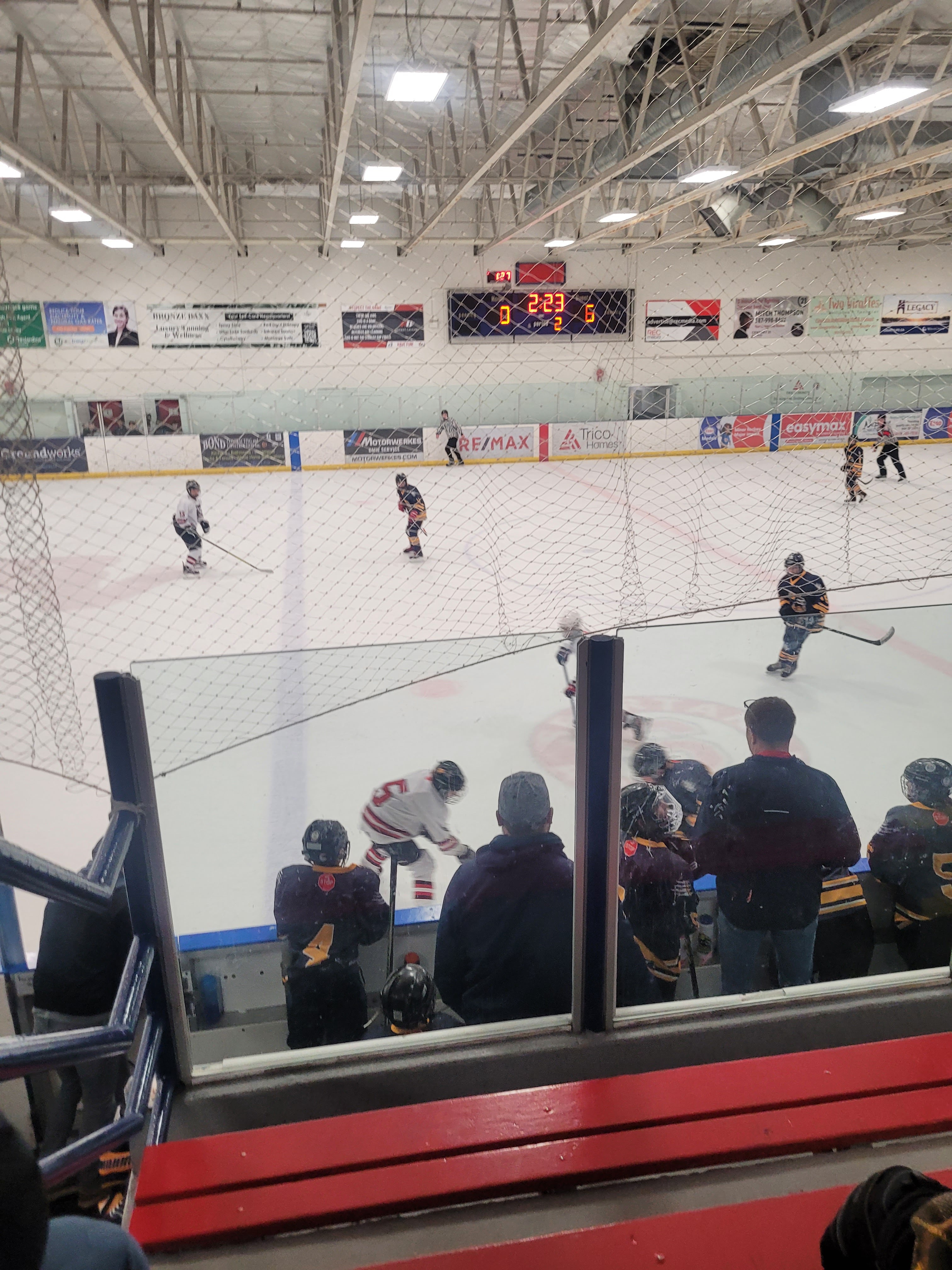 About 10 minutes are left in the game, with the score 4-3 for the opposing team. There is a whistle call. Their goalie heads to the bench, but then goes berserk and attacks one of our players in front of the bench. Prior to this the same goalie had headed to his bench for a temper crying spell after a goal. It was mass chaos with the young refs not knowing what to do, what to call etc. It ended up two penalties for them and one for us. This scenario took so long including another crying spell laying on the ice to add drama to it. It would have called a delay of game. It took so long they moved the time clock ahead by 8 minutes to 2 minutes left which gave Jackson’s team no chance to catch up.