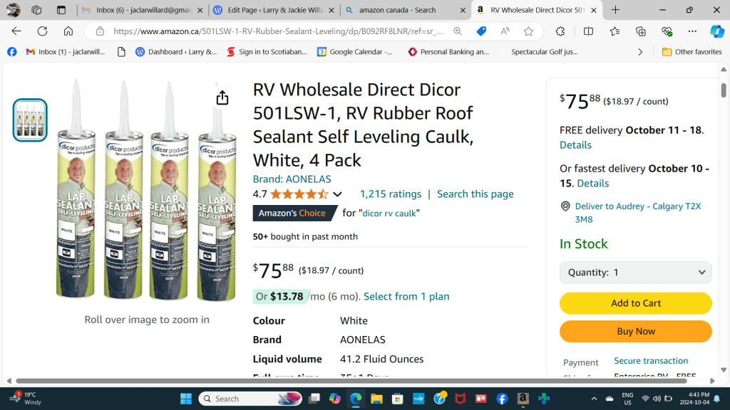 Due to the winter temperatures we are experiencing I had to put socks on with my sandals. And my RV tech changed the appointment to Friday. I am ok with this as sealant at warmer temperatures is better and he phoned me to let me know. That is great and livable.