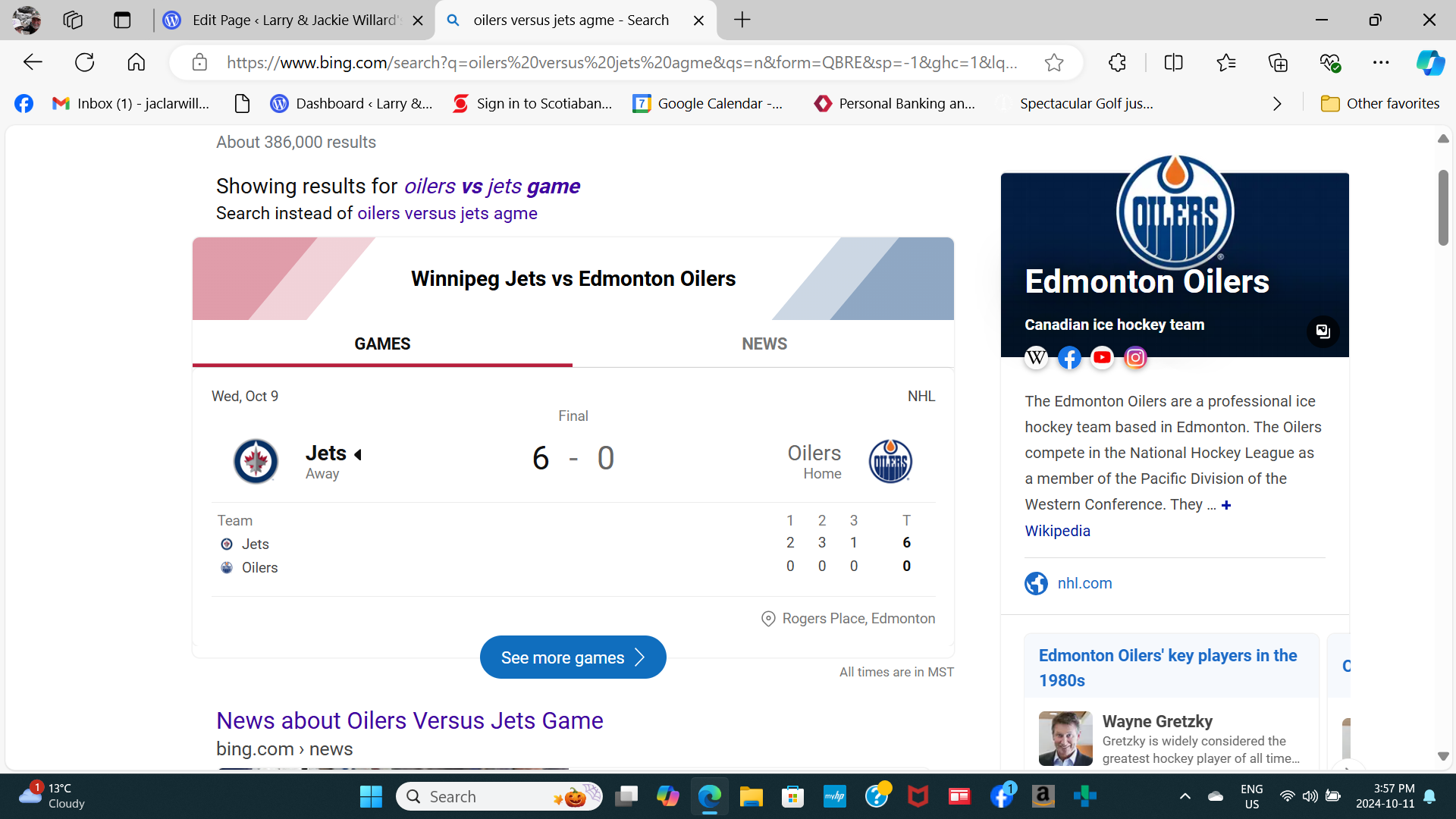 Hockey season is about to start. I entered the pool again and hopefully with better results. I refuse to mark Oiler players down. It hurts my points a bit, but I have to stand behind my conviction. The Oiler’s learned a lesson last year. One or two players DO NOT make a team. I still should be ok without racking up McCry Baby’s points.