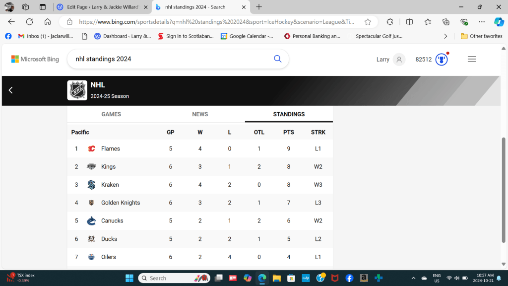 We had a fun night at Boston Pizza watching the Flames game. I was surprised the bar was quite empty but I think most of the younger crowd were at Halloween parties. We were loyal Boston goers for years. However, they kept changing the menu. We kept finding better places. Tonight though the food was excellent and the service remarkable. Our waitress made the night with her way with people. I was impressed with Jackie’s meal size and looks. Yep you guessed it. Chicken Caesar salad. Everyone’s food looked just as good. Fast service, drink specials and lots of TV’s. I did wake up with a stiff neck though. The TV’s are too high and, in my case, to the right. Give it a day and it will be perfect. The result of the game wasn’t what we wanted but the team played awesome so nothing to complain about. With the multiple screens we had the Flames, the Stamps and the Dodgers to watch all at the same time.