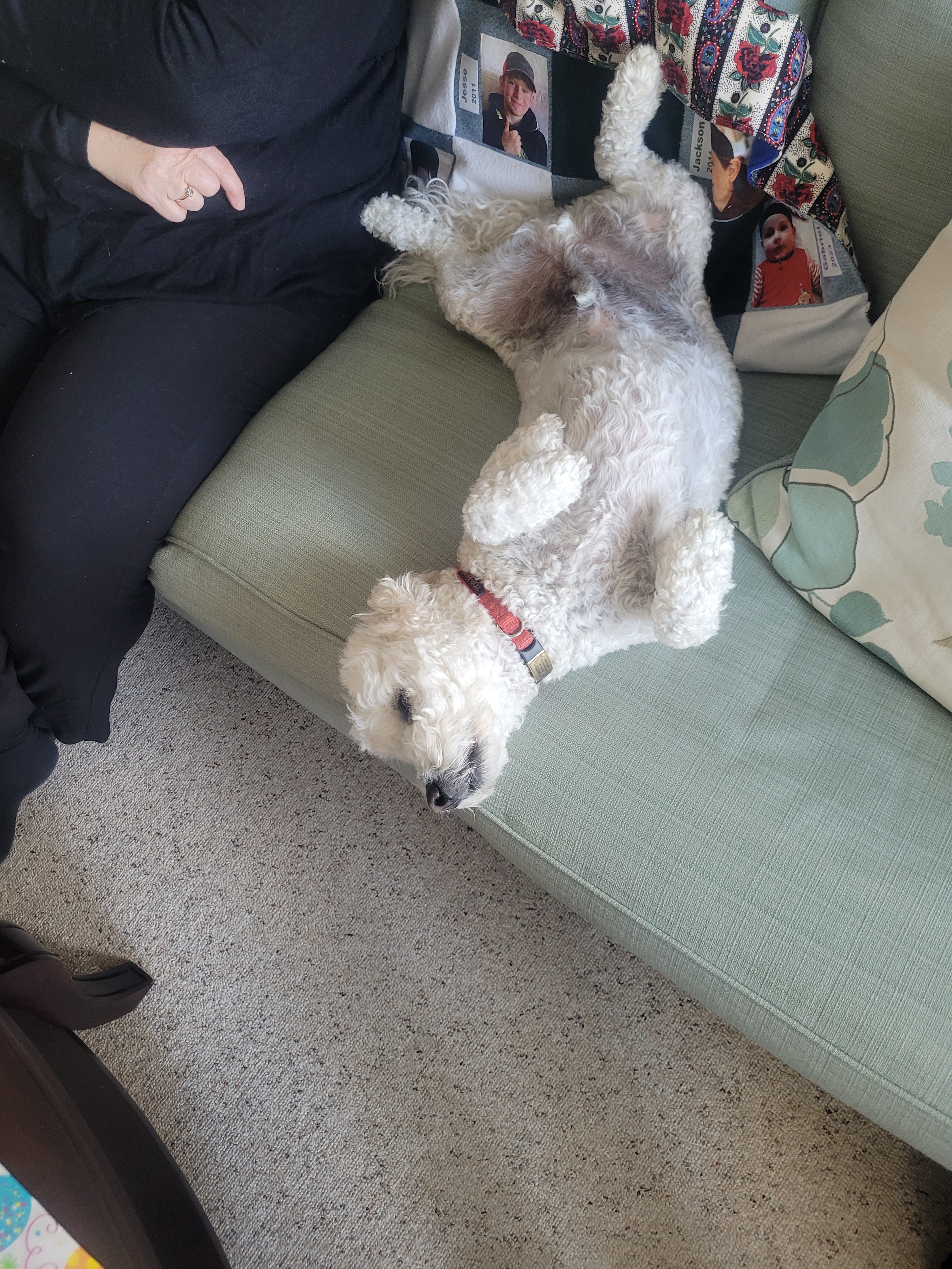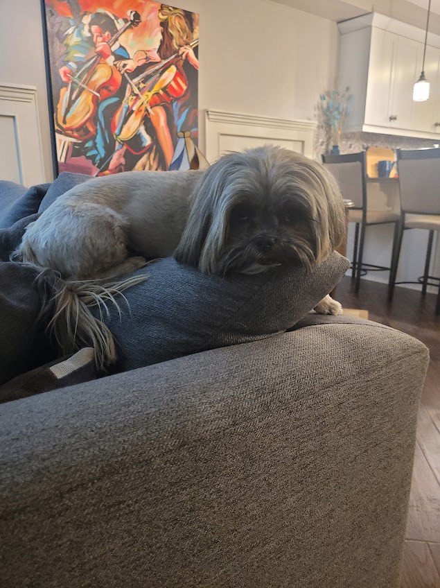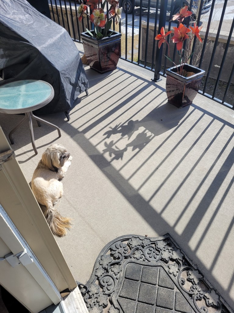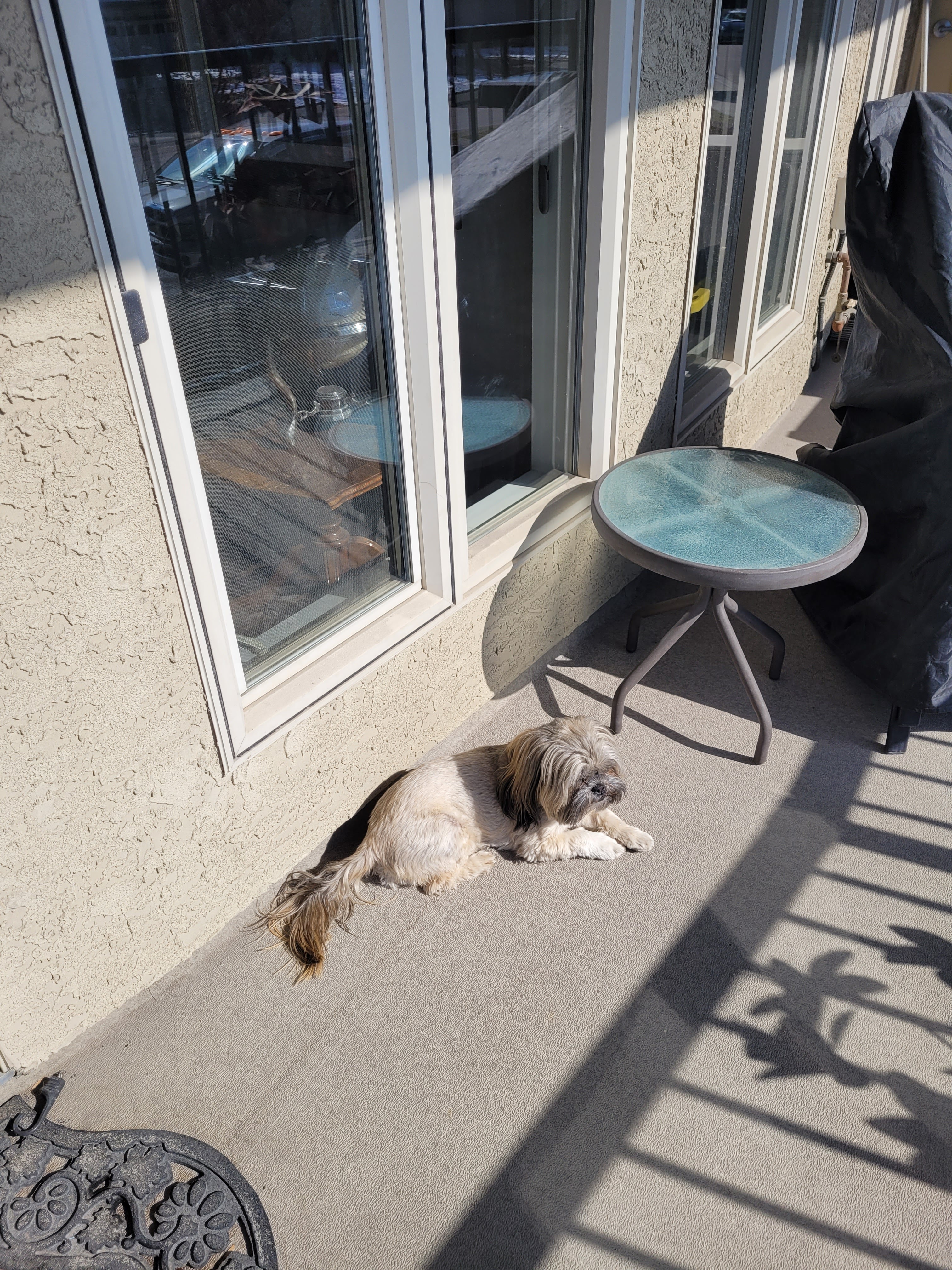 She is out for her walk and sees our water fountain windmill. I pay a fee for it that is just about equal to other communities having a lake. She is home and resting in her favorite spot. She asks, why did you guys bring me back to this freezing cold tundra? Where are all my friends?