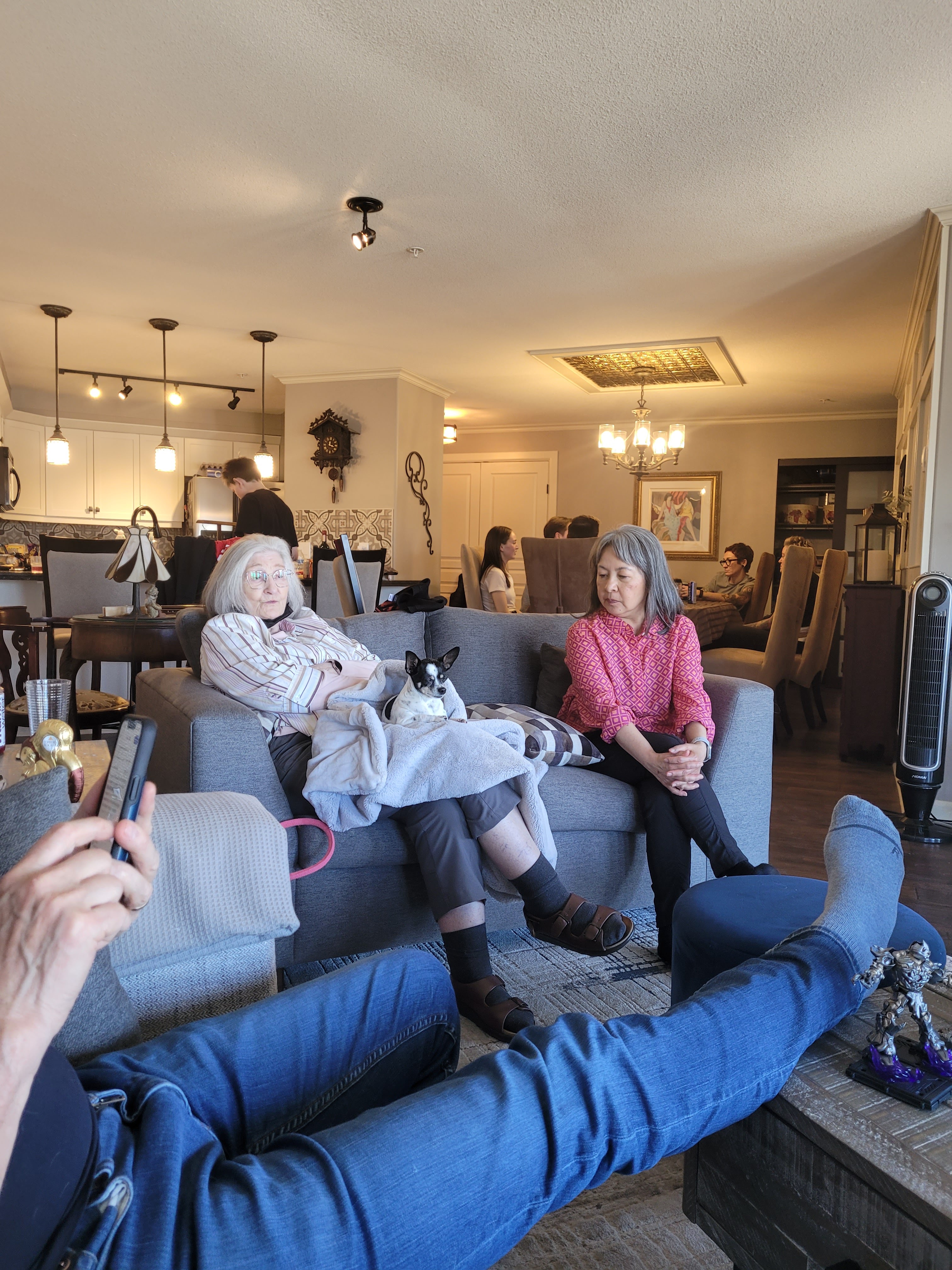 We had our gathering at Kayla’s place which is nice with yard and inside space plus minimal steps for Mom.