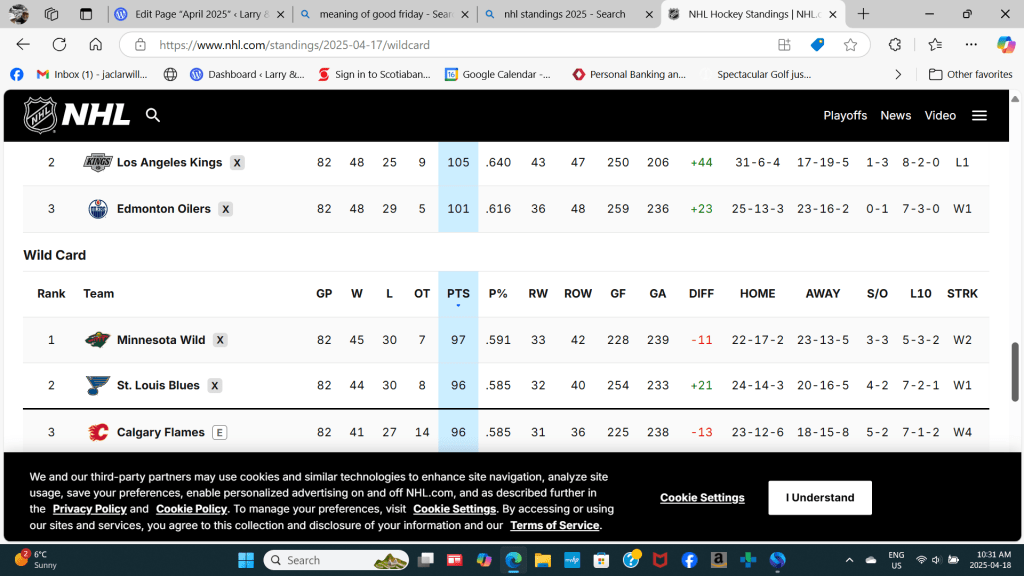 Just one note on the upcoming election. I am really really surprised at our youth, Liberal faithful’s, and union workers mentality in even considering voting for Carney. This should be a simple election with a predictable outcome. We are at risk of destroying Canada for another 4 years and far beyond. If the Conservatives do not win a majority, the recent stock market events will appear minor. These changes will seem like the bunny hill in the mountains compared to the steep slopes ahead. Enough said, as I am beginning to dislike the constant noise around politics here and in the USA.