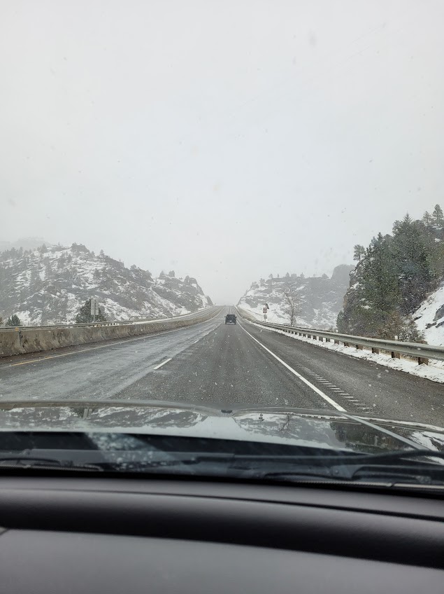 On our trip we experienced wonderful dry roads. We also encountered a hail storm and a few snow storms. There was rain, sleet, and lots of wind. But overall a great drive.