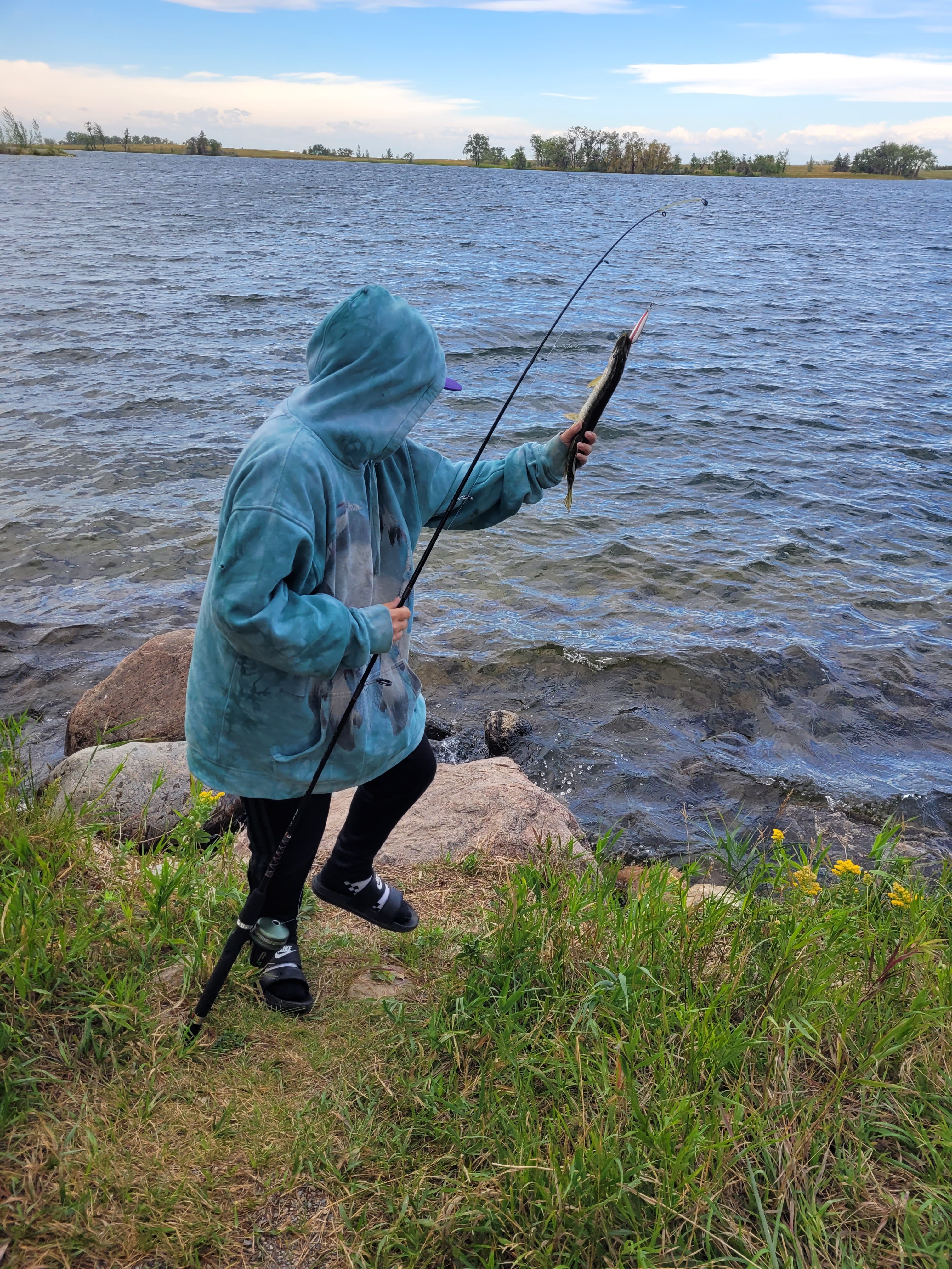 - Fishing for at least 5 hours in the boat and him not being bored and wanting out. I think he caught 8 Jackfish that day.