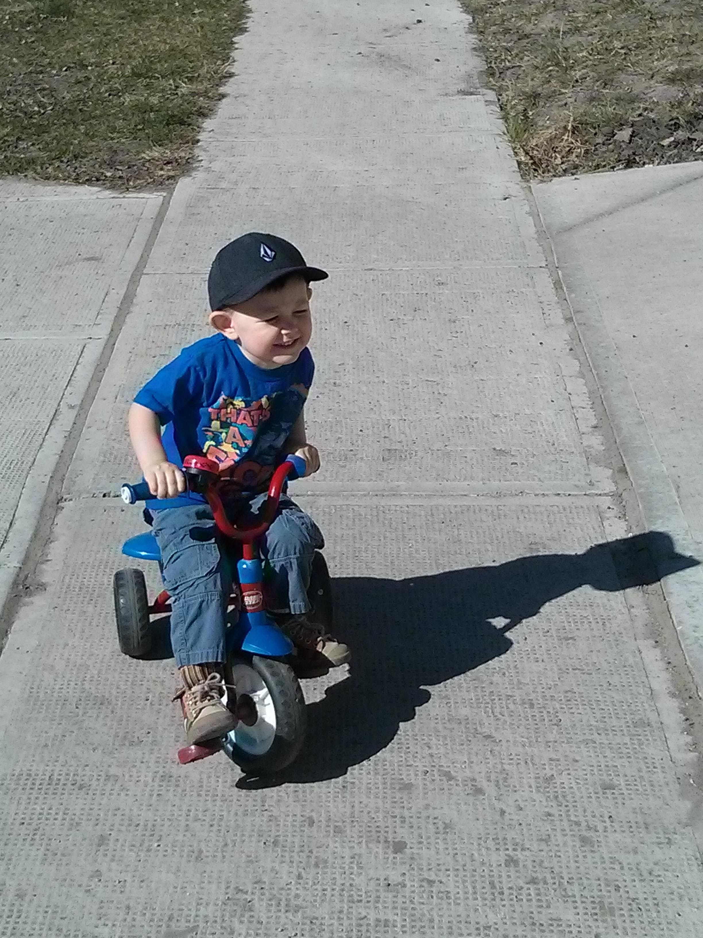 Little Atti struggled with the width and speed and had a few collisions. One time coming around a corner someone bumped him sideways and I plowed into him. He looks at me and goes ” Why are you running into me ?” LOL.