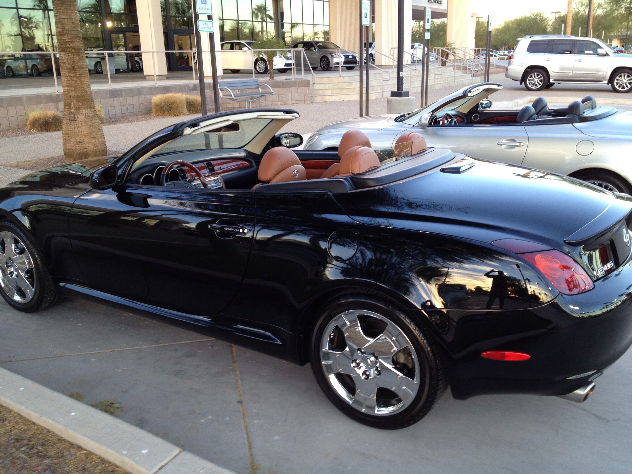 Dave and Audrey came over for supper tonight. A nice visit. Dave drove his SC430 Lexus down and we went for a drive. When new it was a beauty. Today still a beauty. In amazing shape, with perfect leather and a dark black green paint. Being a cabriolet the auto top is fantastic Drives like a new car still . I have always loved the interiors of Lexus and of any of the luxury brands it is tops in reliability. This 4.3 liter engine has 300 horsepower so is a fast fun little car to drive.