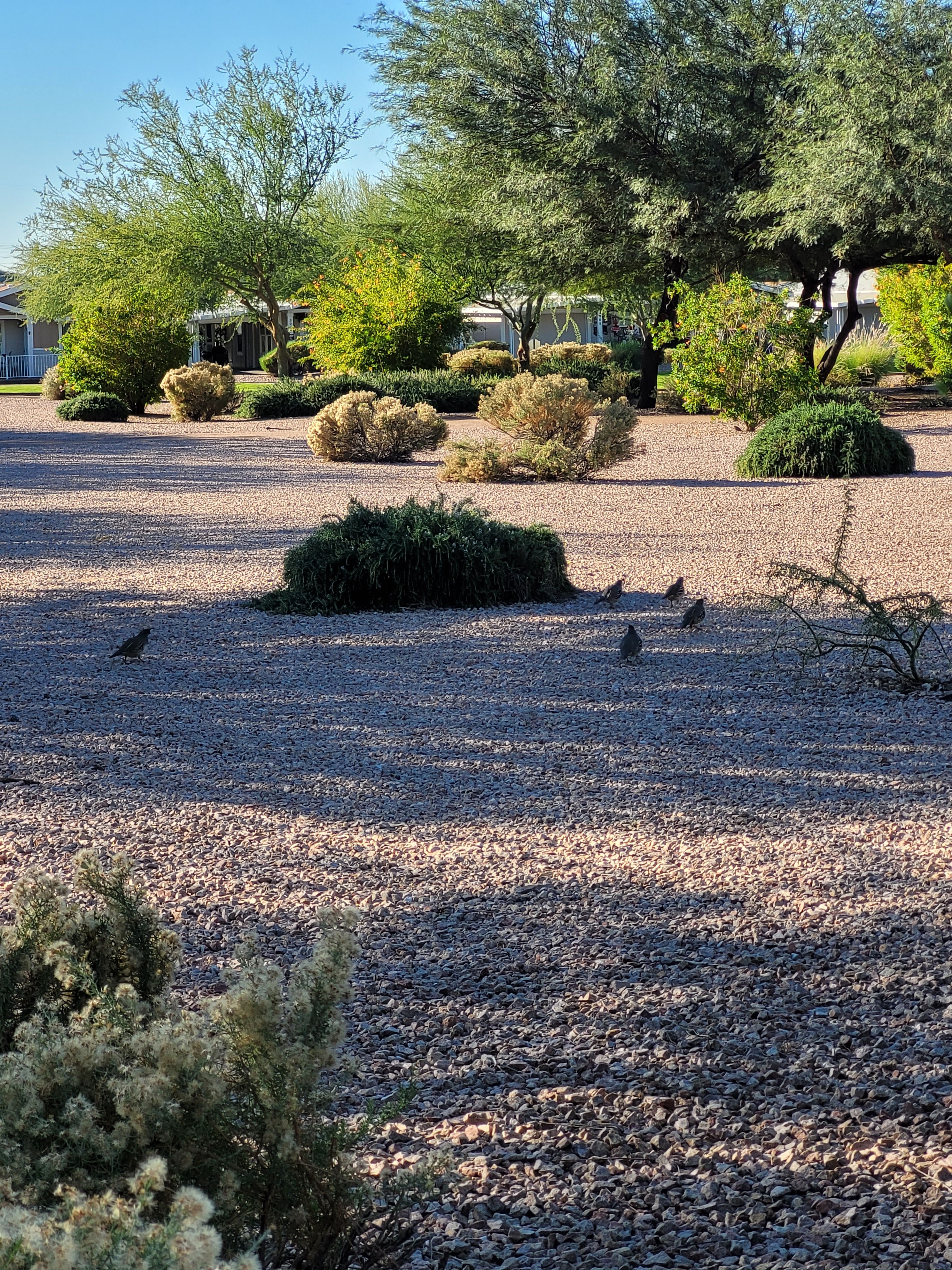 We used to have a ton of quail in the park. I think the number of feral cats here now has killed off the birds. But today Jackie discovered a whole family of them up in the north end of the park