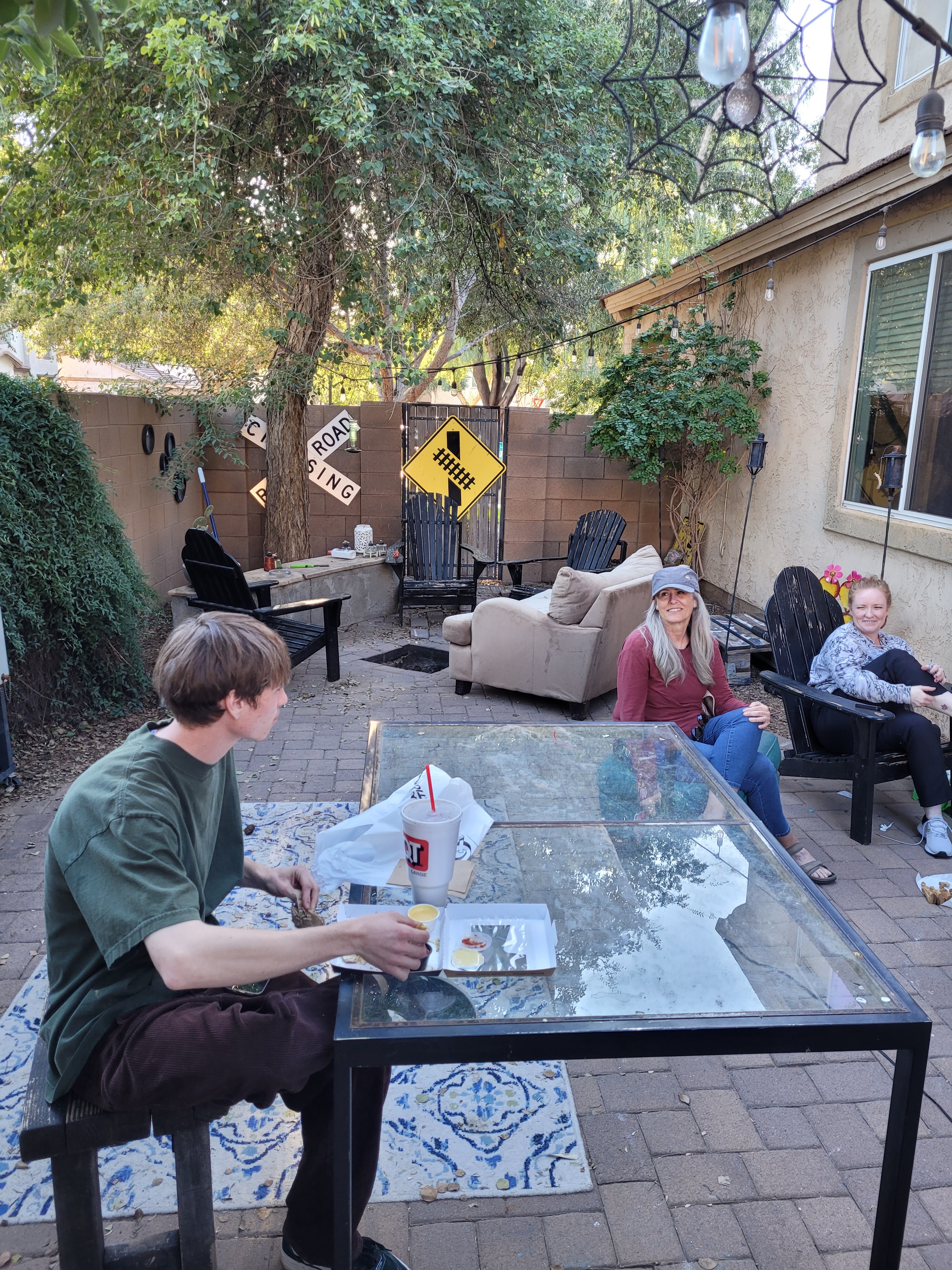 There are a few stupid people going home for Christmas so they thought a quick gathering would be great. It was awesome, with loads of food, nice and warm in their Arizona room and interesting conversation.