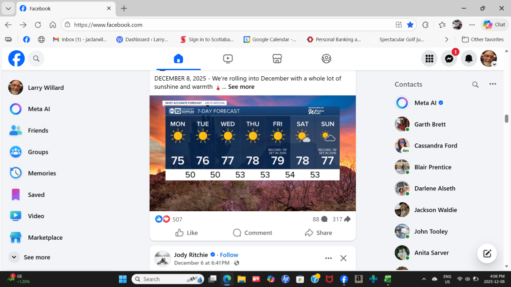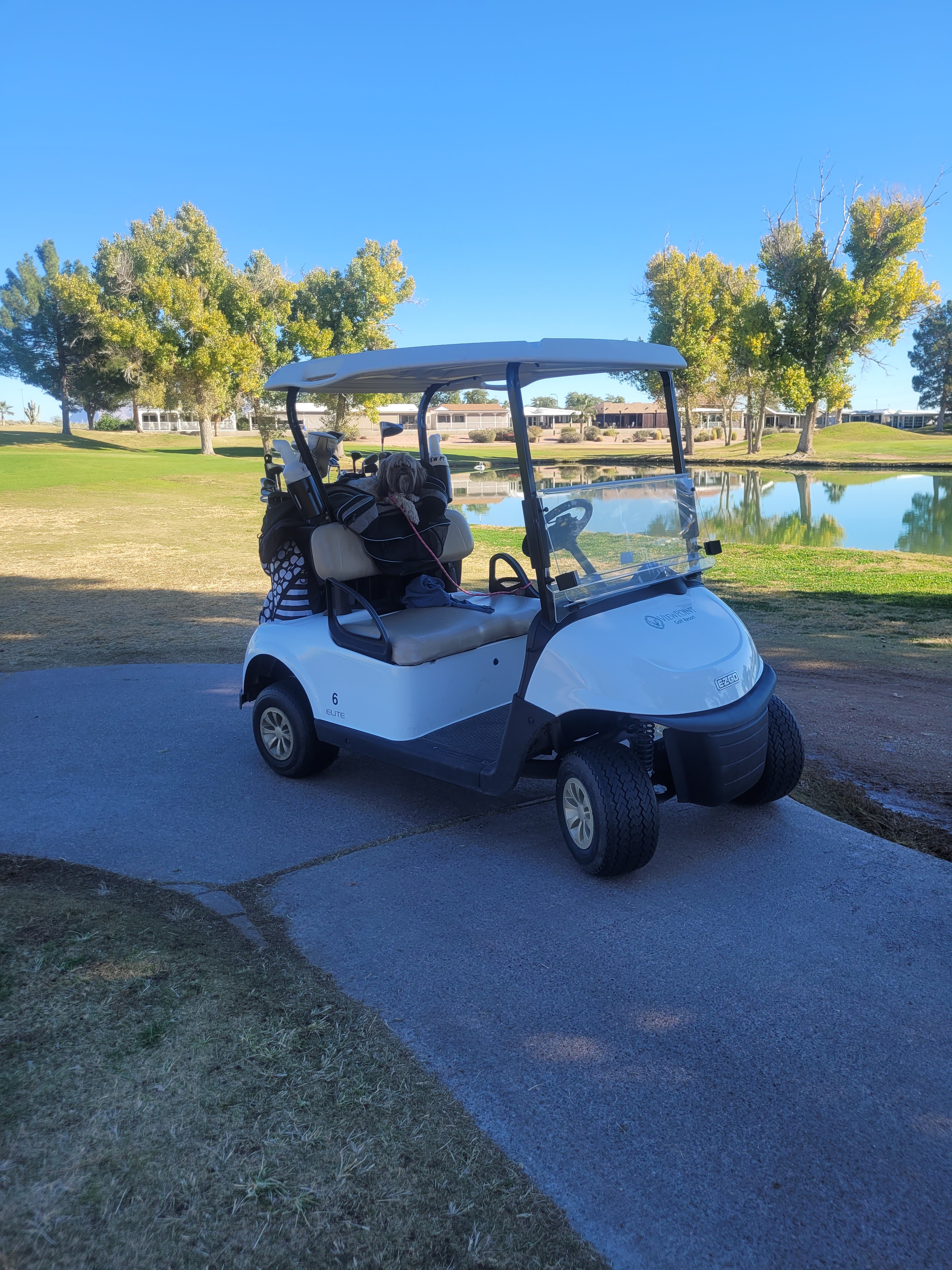 Today was Jackie & I’s golf day with Daisy. She likes to get a round in. It started off cool got decent and then cold the last few holes. For Daisy she loved the cooler temperatures. One forgets it is Mesa’s winter. Full sun, slight cooler breeze with warmth from the sun and cold from the breeze.