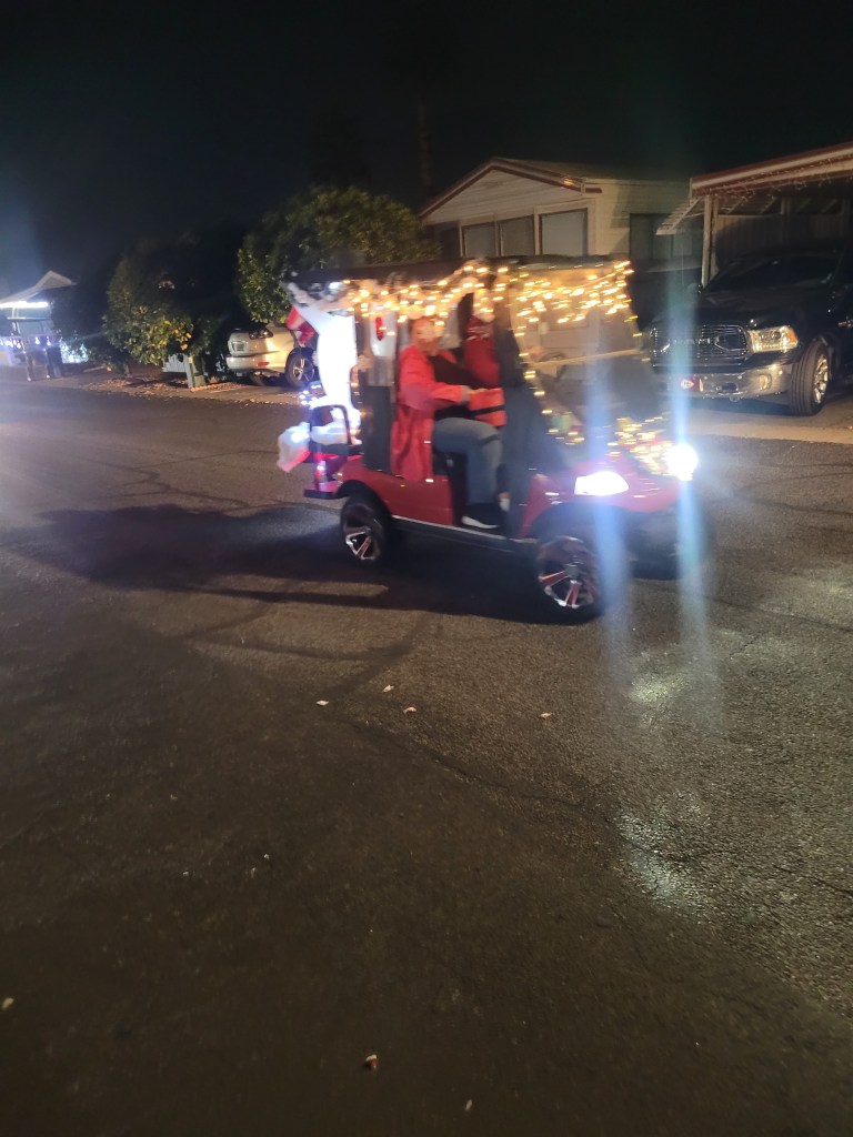 After the news Jackie, Daisy and I drove around the park looking at street lights and themes. Without prejudice I put us in third spot. Having said that with the amount of people missing this year there are some weak streets.