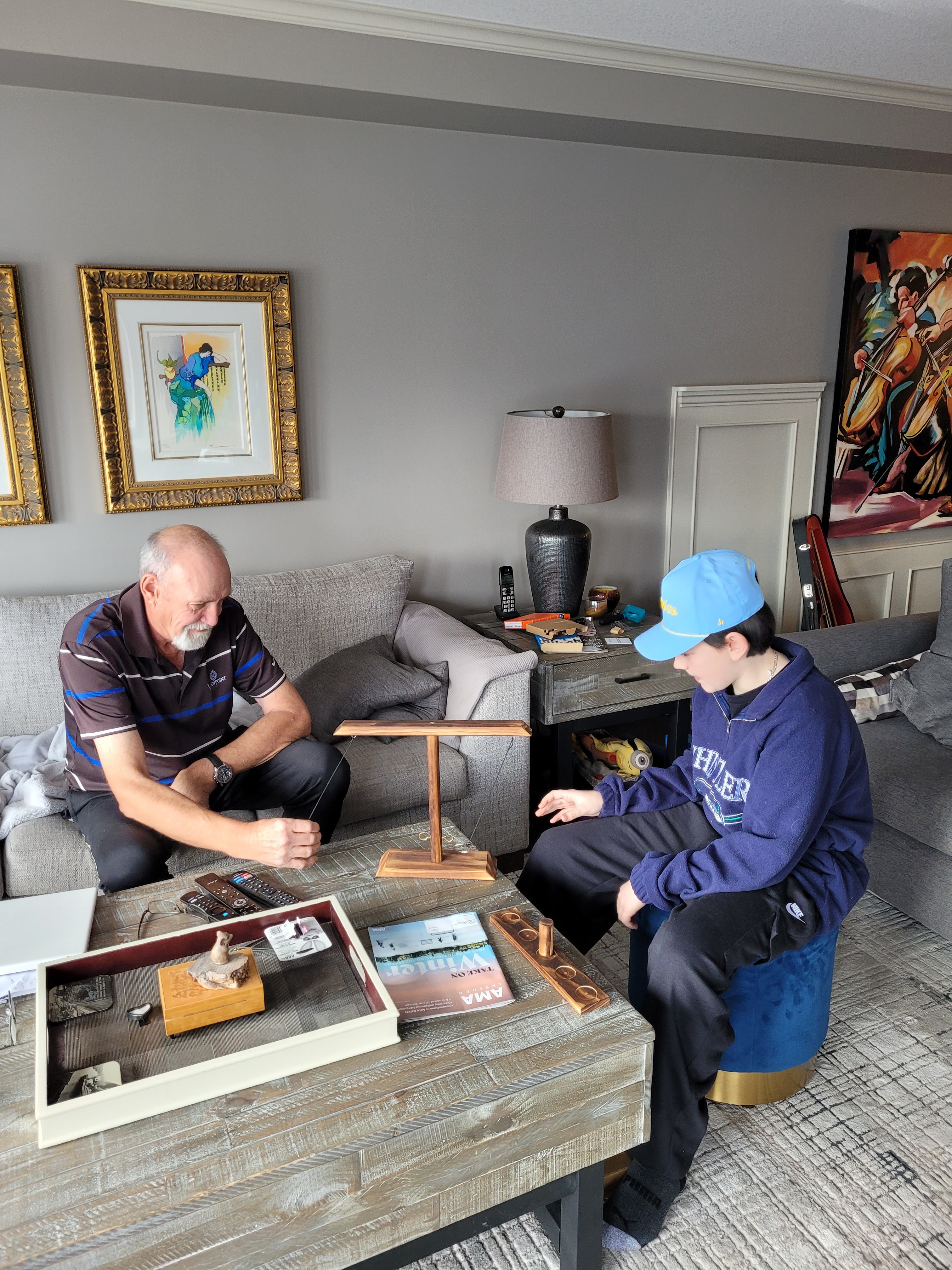 I had a plan. I turned my side of the game hook backwards which gave me a huge advantage. We started to play and sure enough my plan worked perfect and Jackson was shocked how good I was. Hiccup, my plan I thought would last for a long time but after only a few minutes he discovered my tweak to the game. LOL